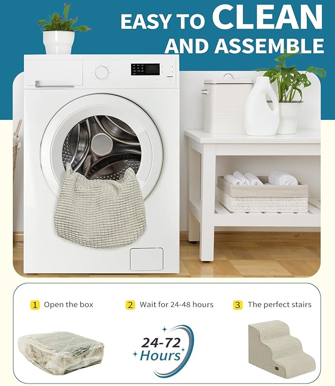 - Easy to Clean - The dog stairs feature a removable, machine washable cover for effortless cleaning. Using without assemble, our pet stairs provide a safe and convenient way for your furry friend to access higher surfaces without the risk of injury or strain on their joints.