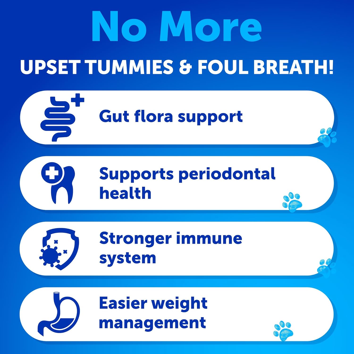 - Support Gut Health: сhew no poo bites for dogs improve breath and bowel health. These chewable treats aid digestion and stop poop eating for dogs, keeping your pup happy and healthy, while promoting overall digestive wellness and vitality.