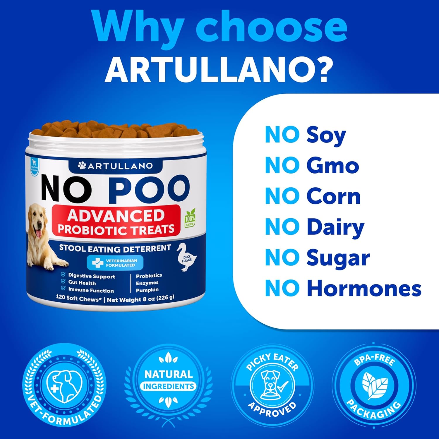 No Poo Chews for Dogs - Coprophagia Stool Eating Deterrent - Stop Eating Poop Treats with Probiotics, Digestive Enzymes, Pumpkin - Prevent Dog, Puppy from Eating Poop - Gut Health Support Supplement