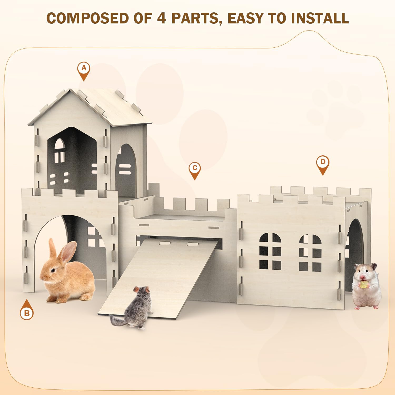 - 【Rubber-Band-Free Setup for Nervous Chewers】:Say goodbye to dangerous rubber bands! Our rabbit houses and hideouts feature new lnterlocking Hook Joint that secure panels tightly without hazardous parts – a critical upgrade praised by rabbit rescue groups.