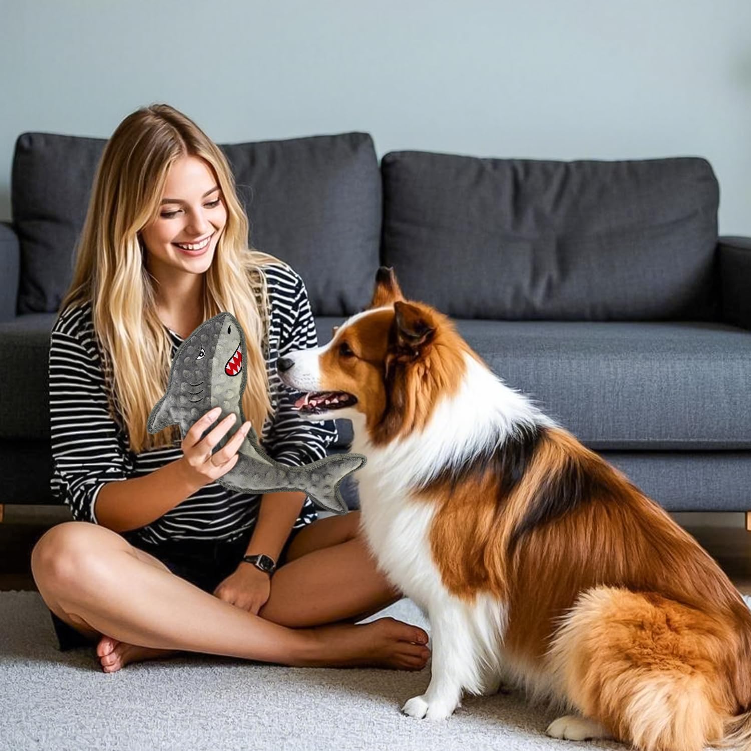 Dog Toy Squeaky Chew Dog Toys No PP-Cotton,no Stuffed for Small, Medium, Large Breed Dogs Interactive Hours of Fun,Gray-Shark