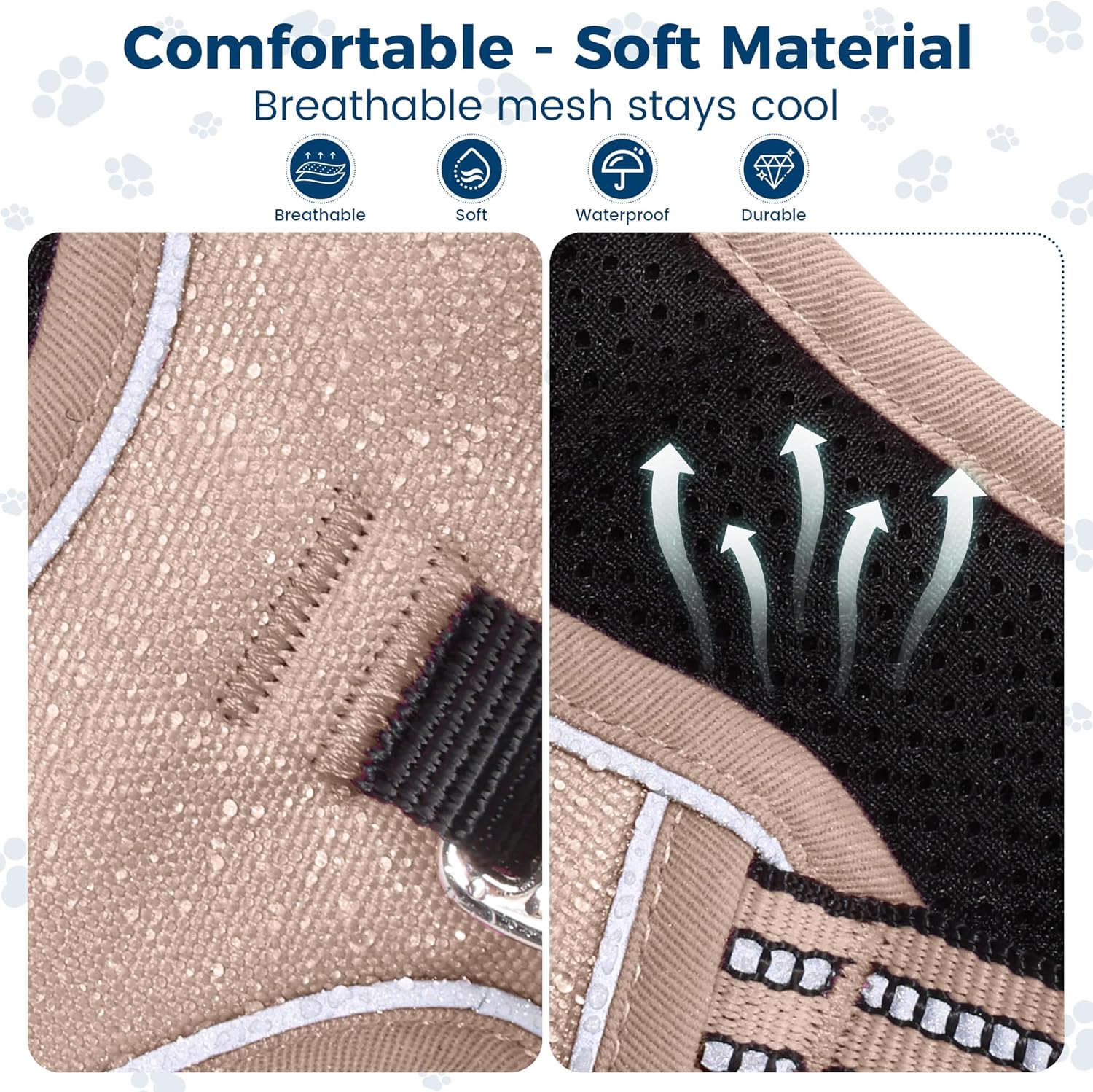 - MAXIMIZE COMFORT: 100% polyester + oxford fabric, durable and waterproof. Lightweight mesh lining and soft padding on the chest and abdomen for good load distribution and injury prevention. Protects your pet while offering maximum comfort and long-term use. Breathable air mesh allows the dog from sultry after activity.