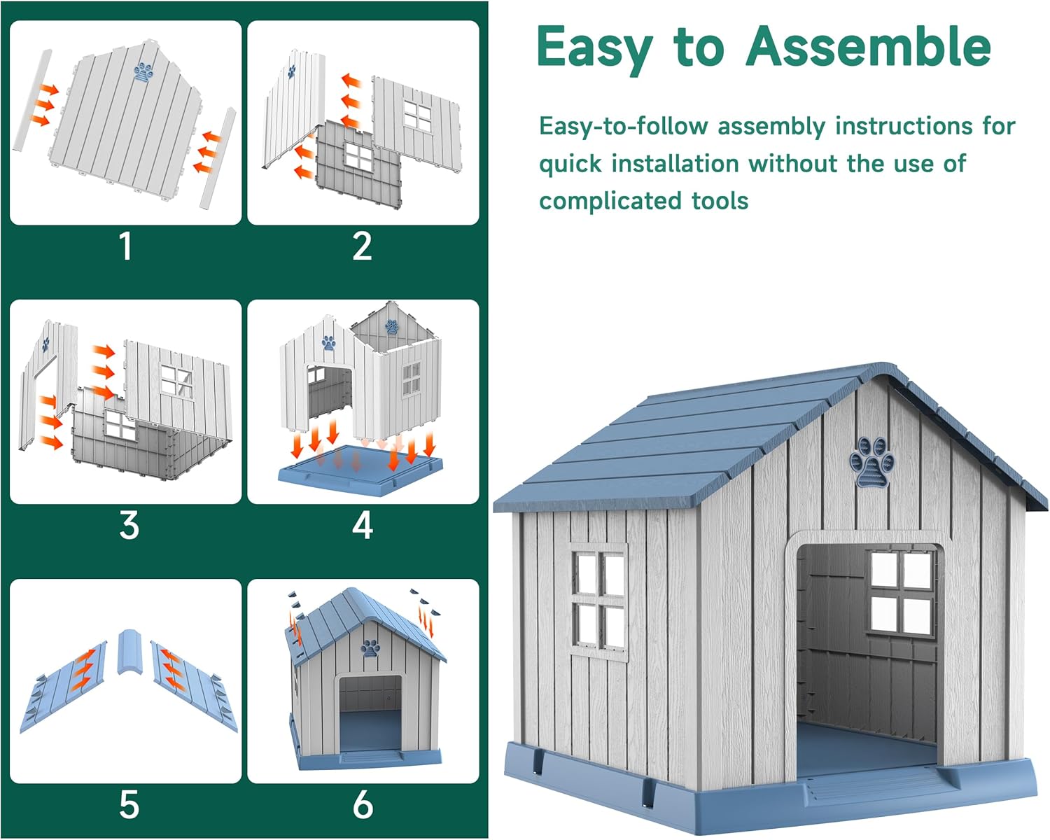 Vixzen 38in Large Outdoor Dog House,Durable Water Resistant Resin Dog House,Doghouse for Small to Large Dogs Indoor or Outside,with Air Vent and Elevated Floor,Blue