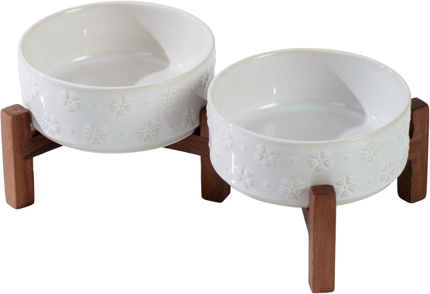 - Acacia Wood Stand: Adopting with classy acacia wood stand, this aesthetically pleasing ceramic dog bowls with stand fits perfectly with any home decor style. By flipping the stand over , you can get 2 different heights to hold the pet bowl. Let‘s elevated bowl company with your pet in different growth stages.