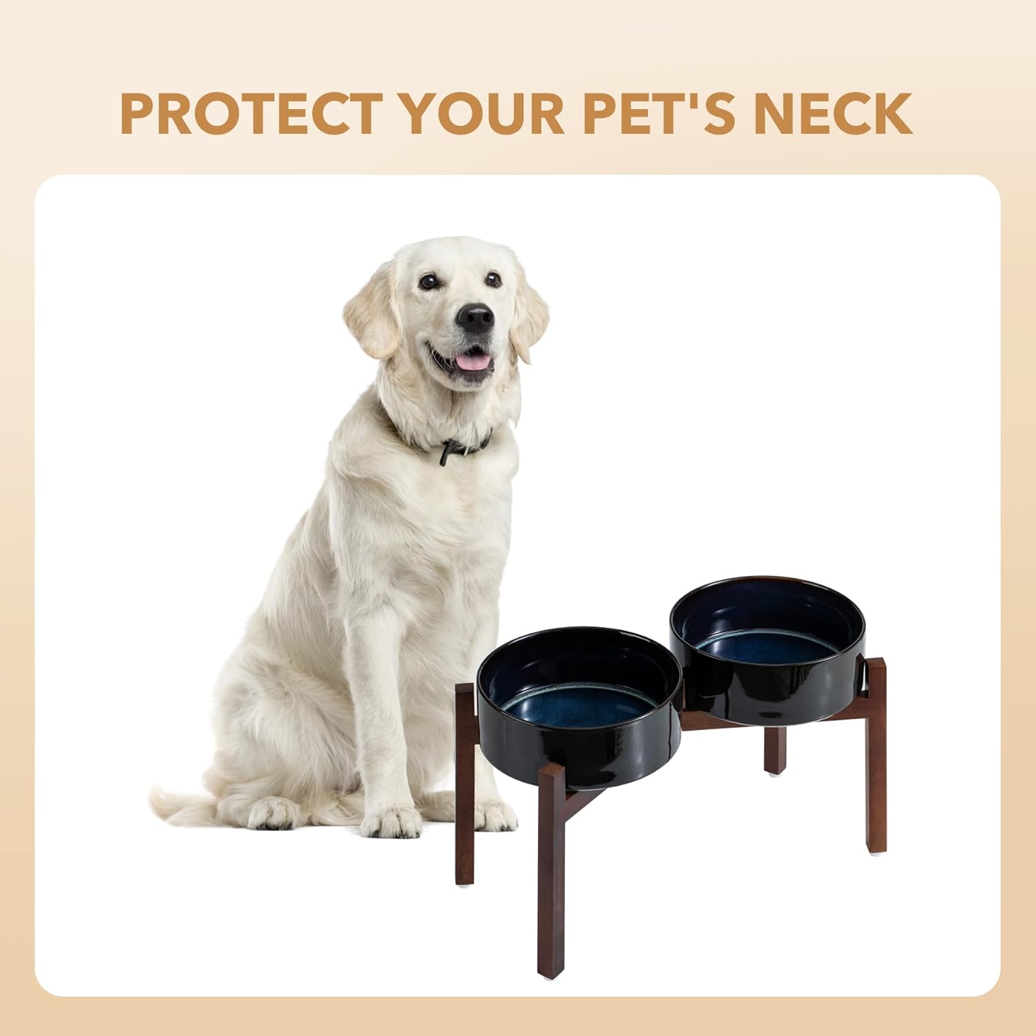- Acacia Wood Stand: Adopting with classy acacia wood stand, this aesthetically pleasing ceramic dog bowls with stand fits perfectly with any home decor style. By flipping the stand over , you can get 2 different heights to hold the pet bowl. Let‘s elevated bowl company with your pet in different growth stages.