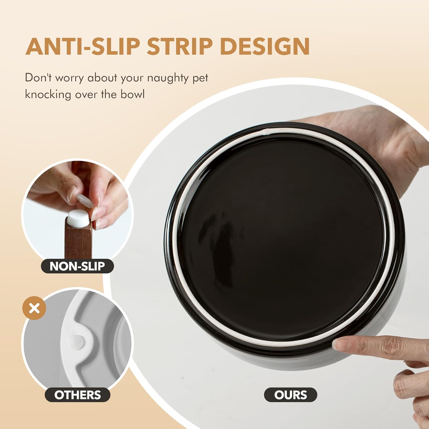 - Stable and Anti-Slip: Ceramic bowl is heavy and stable, and the anti-slip strip at the bowl's bottom can prevent bowl from sliding while your pet eating.