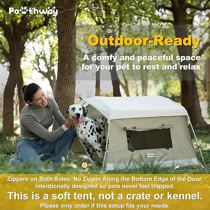 - This Is a Soft Tent, Not a Crate or Kennel: The door zips on both sides, with no zipper along the bottom edgeâso your pet can rest or hide without feeling trapped or stressed. This is an intentional design, not a flaw. Do not leave your pet unattended inside the tent, especially in outdoor or unfamiliar settings. Please only order if this setup fits your needs.