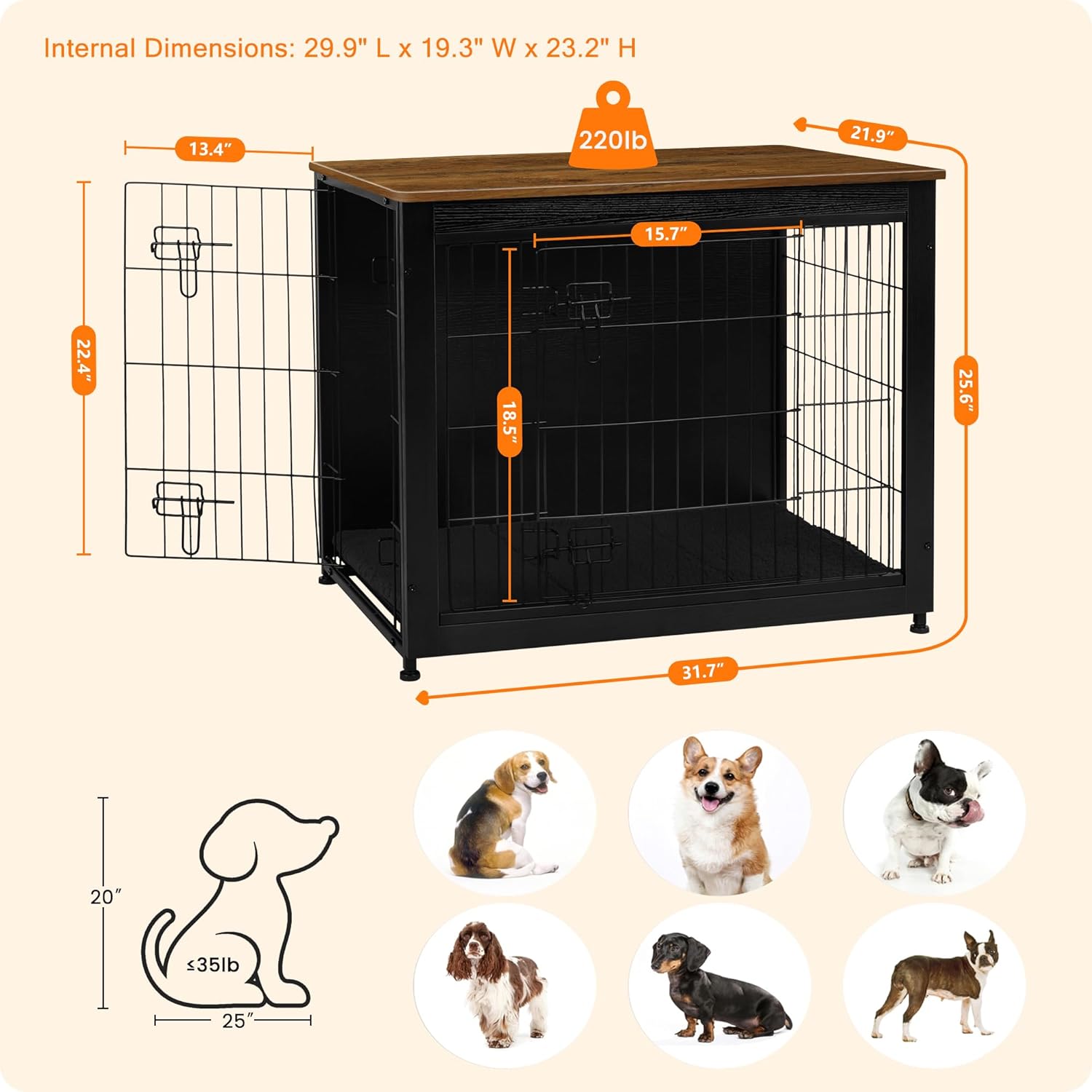 - 【Dog crate with Cushion】 Matching cushion in the crate take your dog a warm and more comfortable sleep, and also we use the wooden plate at the bottom, no pet foot jamming, more safety.