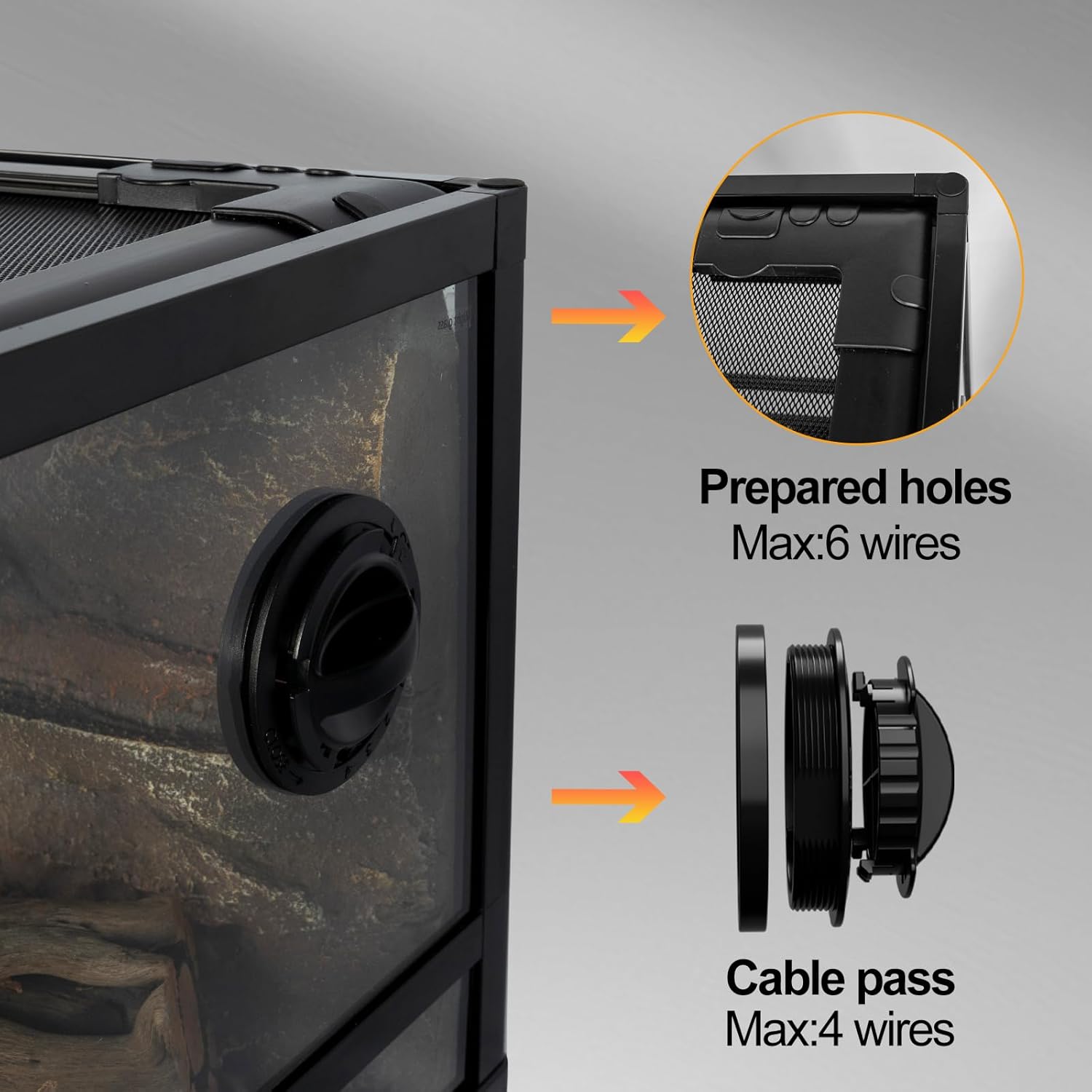 - Dual-Function Base & Cable Port: The unique base serves as a water basin for maintaining humidity and is raised to provide ample space underneath for safely placing heating pads or heat mats. Includes cable ports for tidy wire management