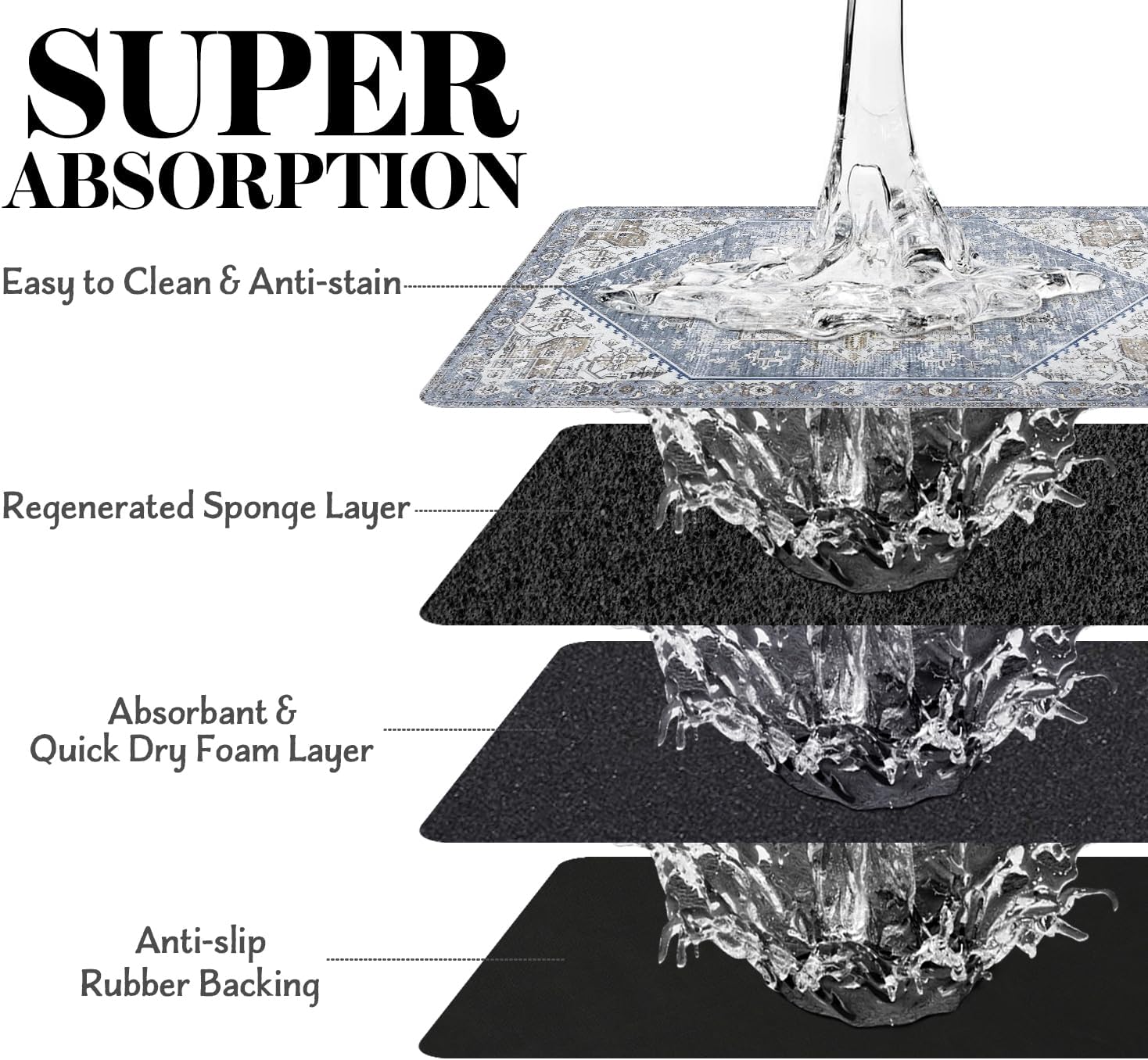 • Super Absorption: The dog mat for water bowl can absorb spilled water without leaving traces and dry quick, avoid wetting pet paws even for messy drinkers. And it does not attract pet hair like traditional silicone dog bowl mat.