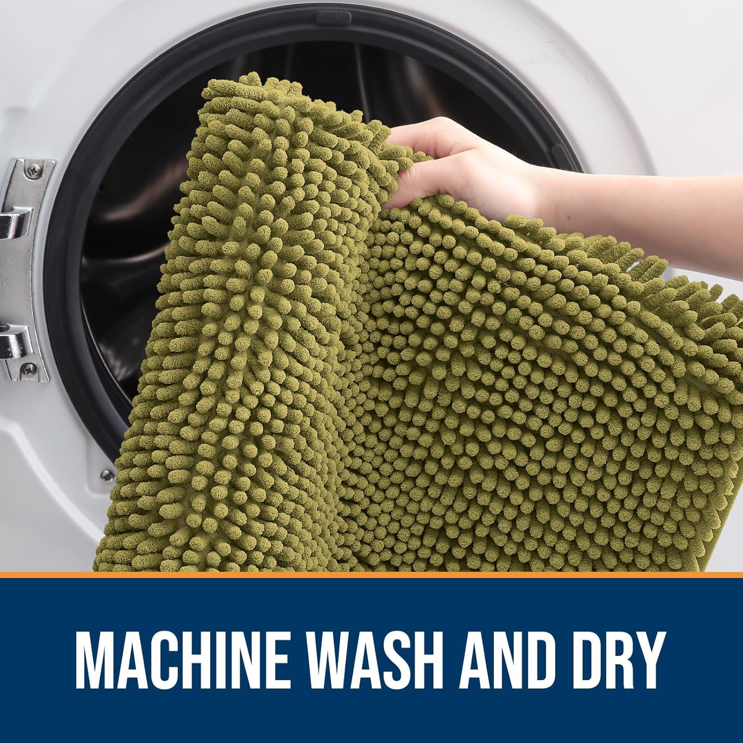 OLANLY Dog Door Mat for Muddy Paws 30x20, Absorbs Moisture and Dirt, Absorbent Non-Slip Washable Doormat, Quick Dry Chenille Mud Mat, Entry Indoor Entryway Carpet for Inside Floor, Willow Green