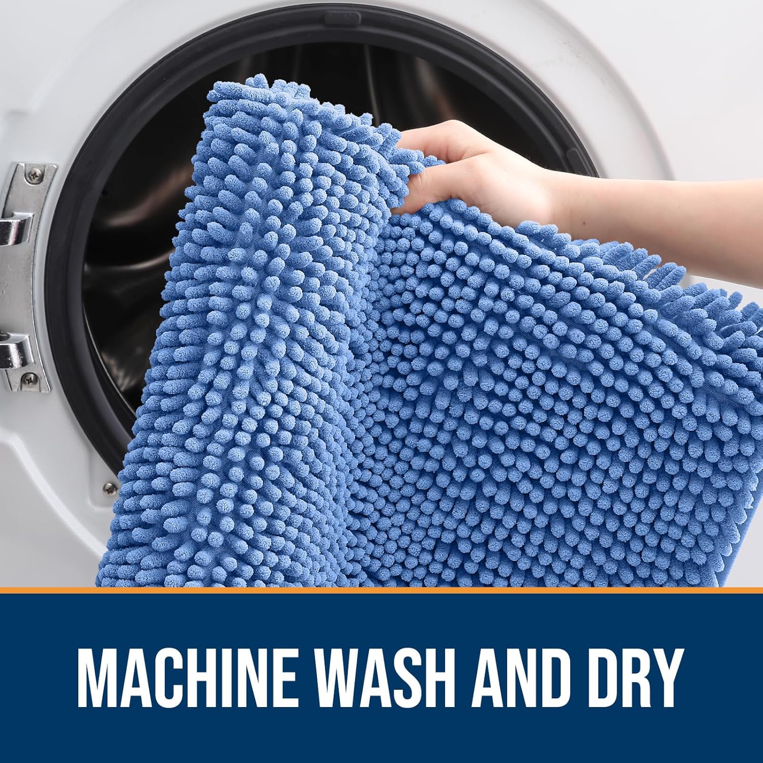 OLANLY Dog Door Mat for Muddy Paws 36x24, Absorbs Moisture and Dirt, Absorbent Non-Slip Washable Doormat, Quick Dry Chenille Mud Mat, Entry Indoor Entryway Carpet for Inside Floor, Cornflower Blue