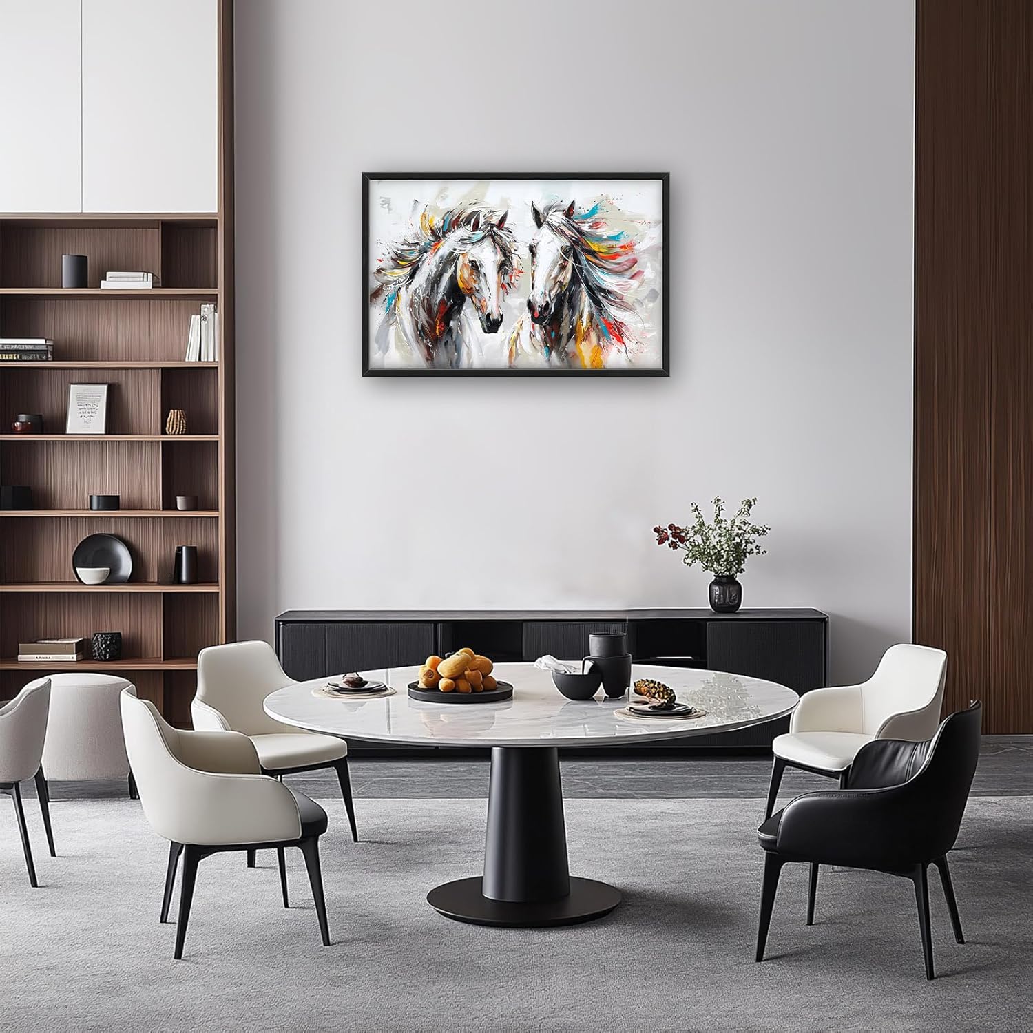 Quorin Horse Large Wall Art White Horse Animal Pictures Wall Decor Colorful Graffiti Canvas Print Painting Artwork for Bathroom Living Room Bedroom 36L x 24W