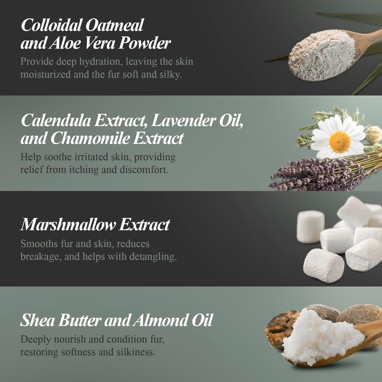 - RELIEVES ITCHY & IRRITATED SKIN NATURALLY: Pure oatmeal, aloe vera, and coconut-derived cleansers soothe itchy, flaky, and irritated skin while deeply moisturizing your dog's coat for a soft, healthy shine.