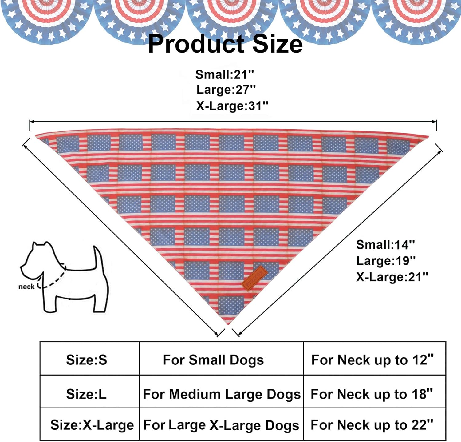 - 3 Size for Choose: Small fits necks up to 12'', Large fits necks up to 18'', X-Large fits necks up to 22''. please choose a suitable size for your furry friend. Please measure the neck size of your pet and leave room to tie knot.
