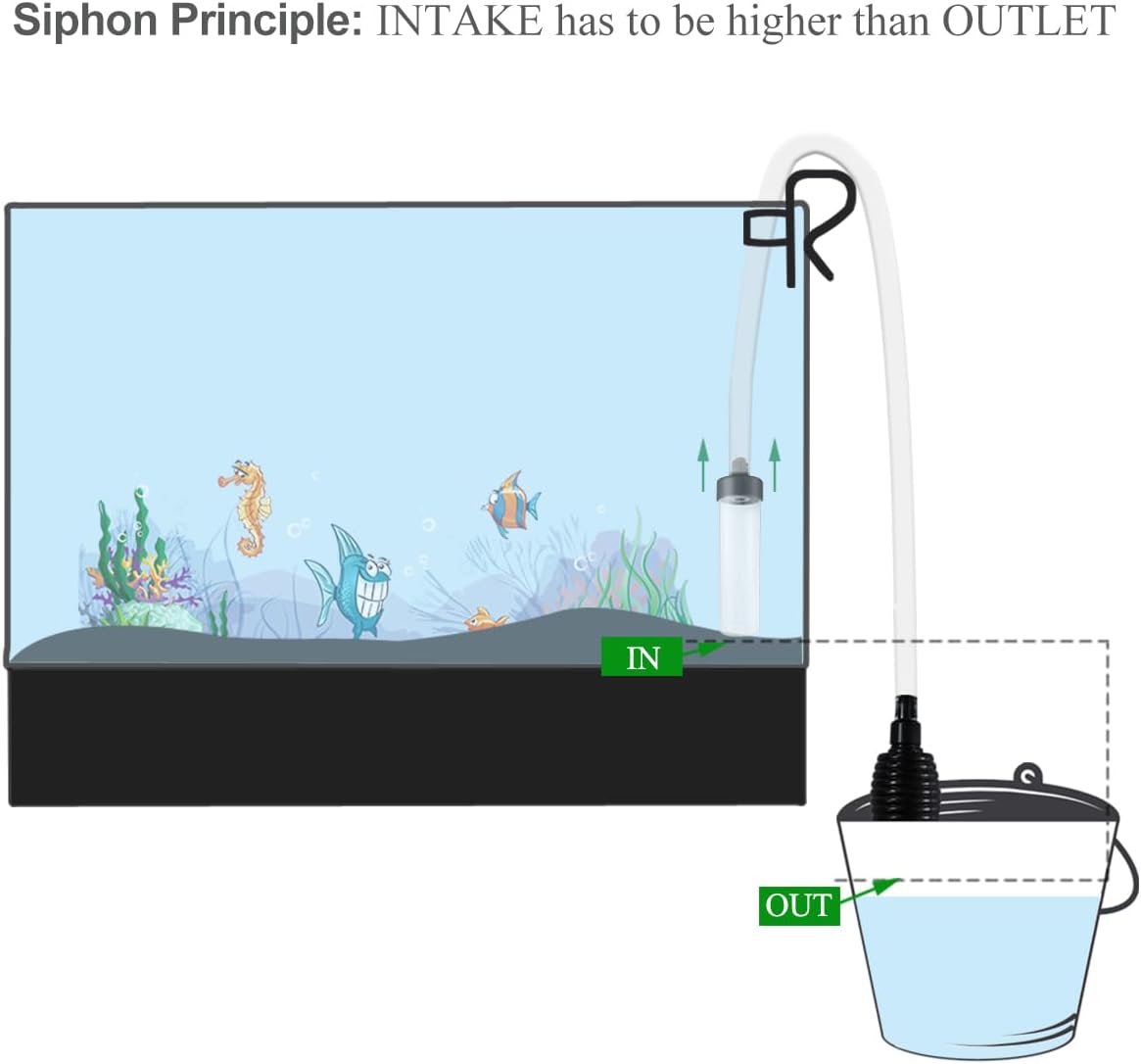 - FUNCTION --- Easy to control, convenient to siphon fish faeces, impurities, turbid water out of fish tank.