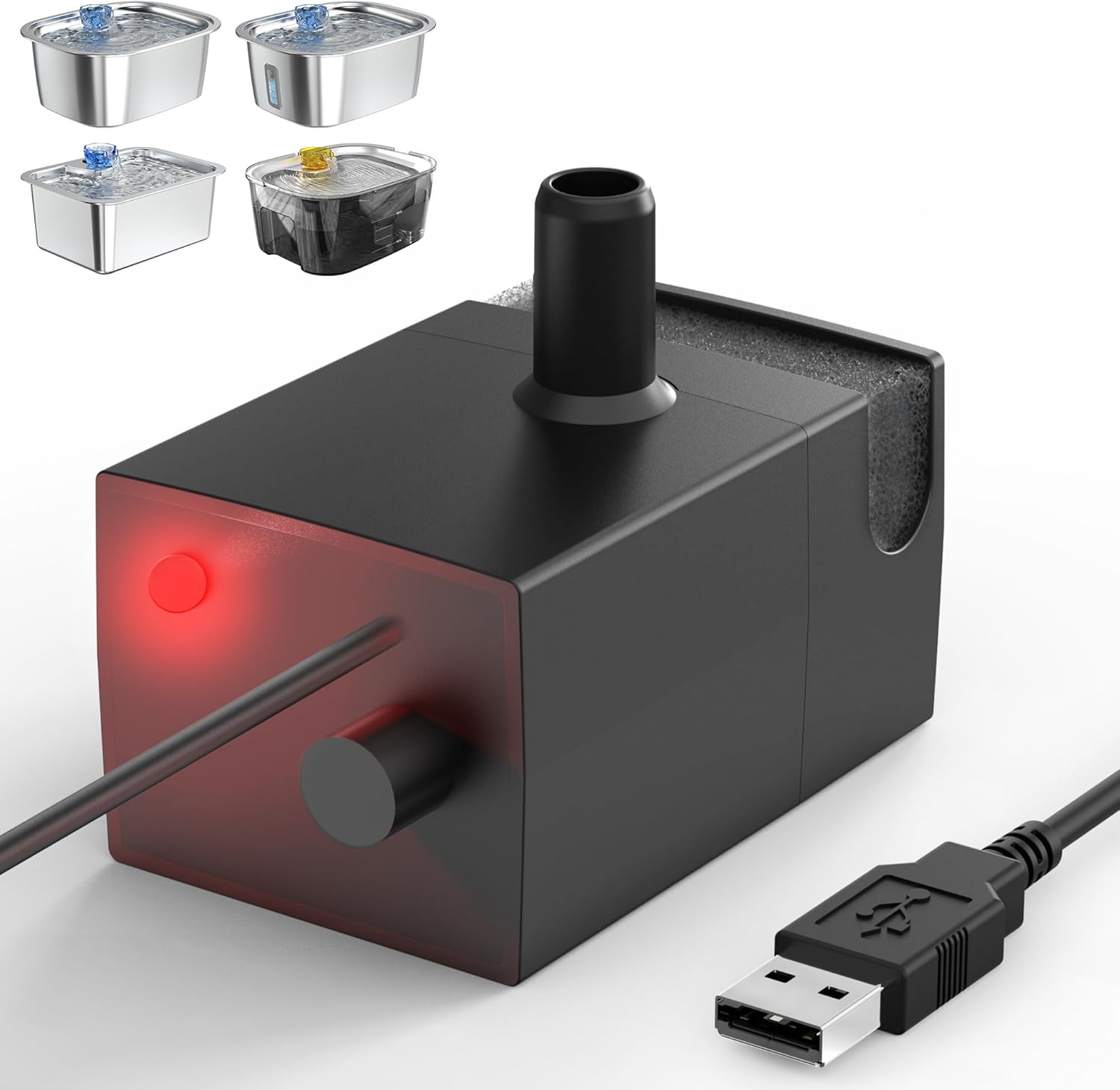 - Extended Lifespan Design: The water pump features a built-in filter sponge to trap hair and impurities, along with a durable ceramic shaft. This design helps keep your pet's water cleaner for longer and extends pump life. Operating at just 5 volts, it's energy-efficient and safe for pets. The 6.6-foot power cord offers flexible placement, making it a convenient and reliable choice for your pet's hydration needs