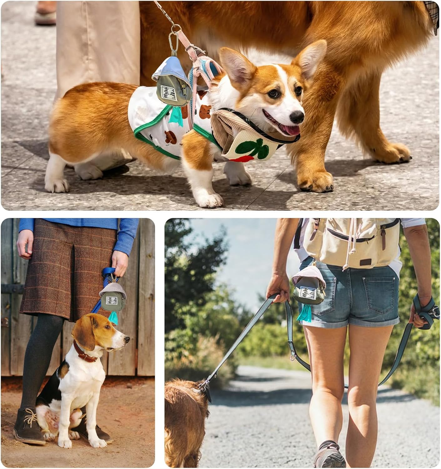 - ๐๐ญ๐ฒ๐ฅ๐ ๐๐ง-๐ญ๐ก๐-๐๐จ๏ผA separate biodegradable dog poop bag dispenser included in the set. This palm-sized bag holder effortlessly attaches to belts, strollers, or backpacksโmaking clean-ups simpler and faster than ever