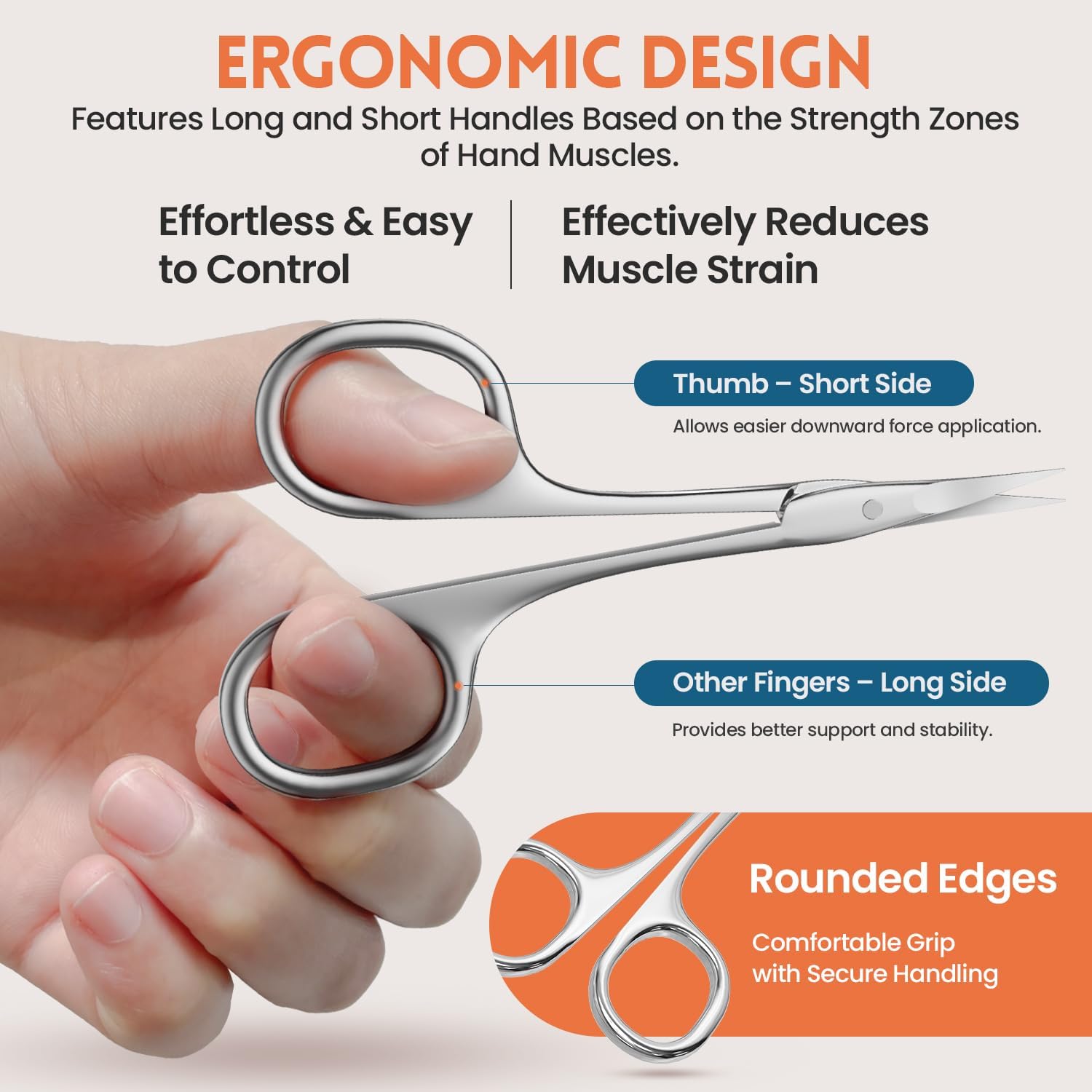 - Multi-Purpose Small Scissors: Perfect for manicures, pedicures, and detailed grooming—like trimming cuticles, beards, eyebrows, and eyelashes. Compact and travel-friendly with a protective tip cover for safe storage