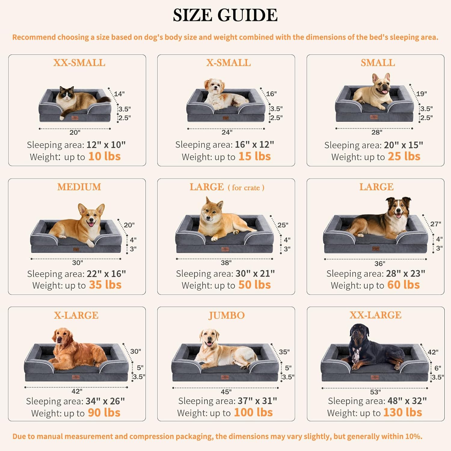 Comfort Expression Large Dog Beds Waterproof Orthopedic Foam Dog Sofa Beds Comfy Pet Bed with Washable Removable Cover & Non-Slip Bottom(Large,Dark Grey)