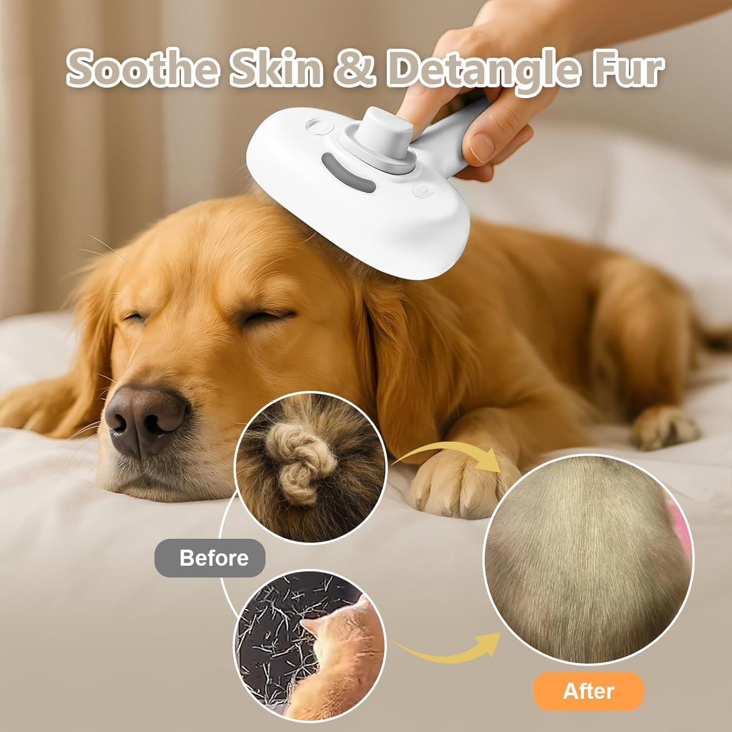3-in-1 Pet Steam Brush with Self-Cleaning & Cool Mist – Portable Grooming Tool for Cats & Dogs, Long-Lasting Shedding Control & Detangling, Refillable Water Tank & Fast Charging