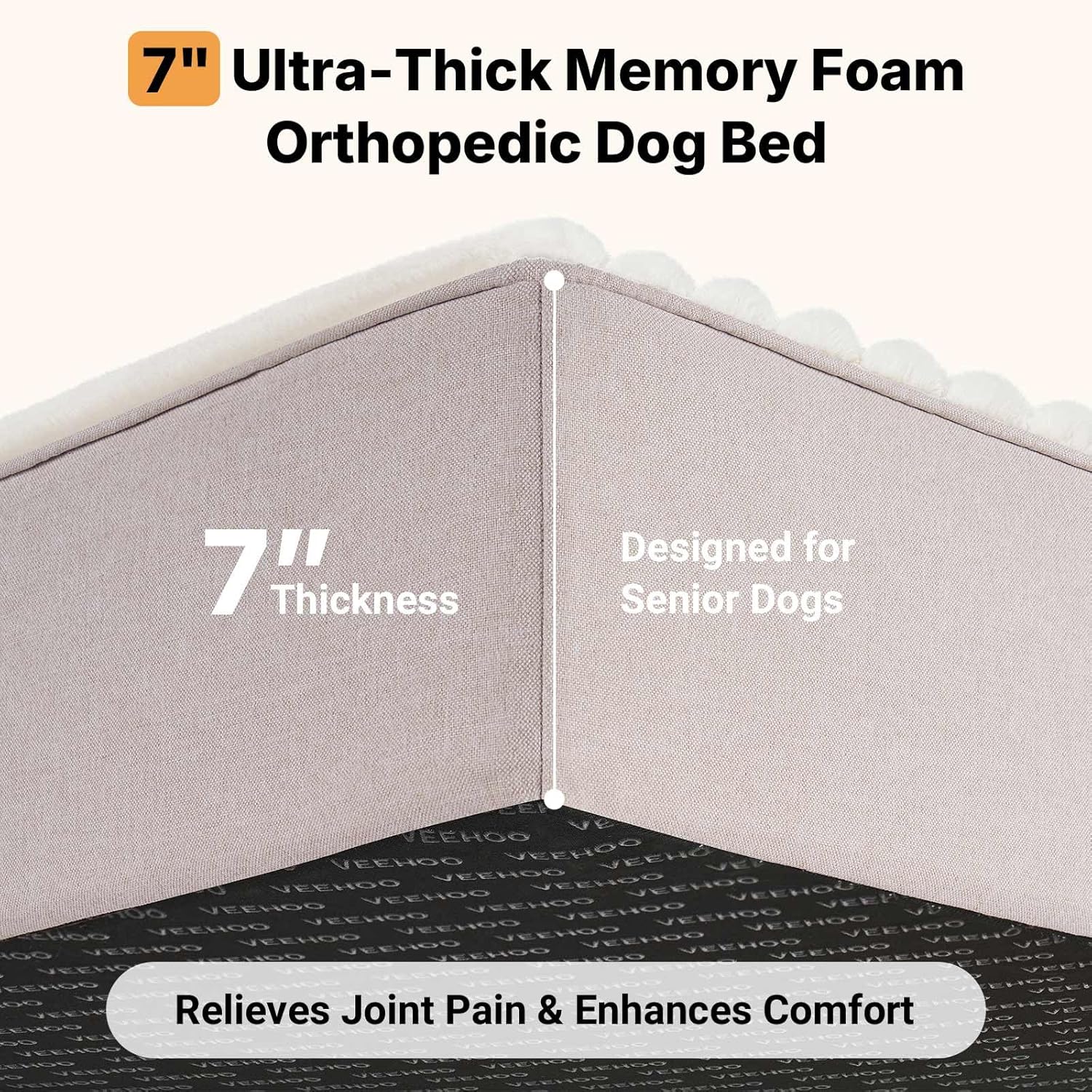 Veehoo Orthopedic Memory Foam Dog Bed, 7 Inch Thick Extra Large Dog Bed XL for Senior Dogs with Ultra-Soft Fluffy Surface, Waterproof Liner, Removable Washable Cover and Non-Slip Bottom, 48"x30"x7"
