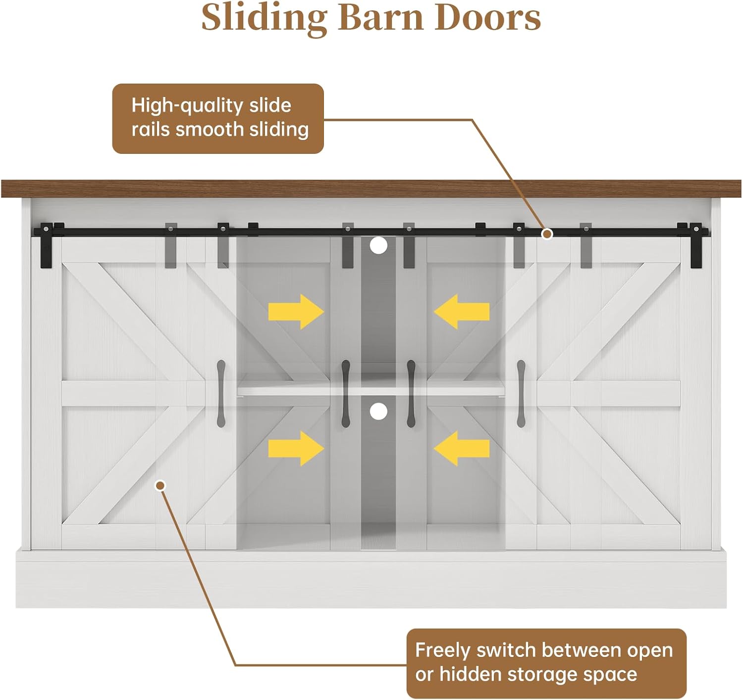 - 【Stylish Farmhouse Design】The rustic-chic barn door system transforms between open-access and concealed storage modes, while the matte textured finish resists scratches and water marks - blending flawlessly with contemporary, industrial or farmhouse decors as a functional furniture centerpiece.