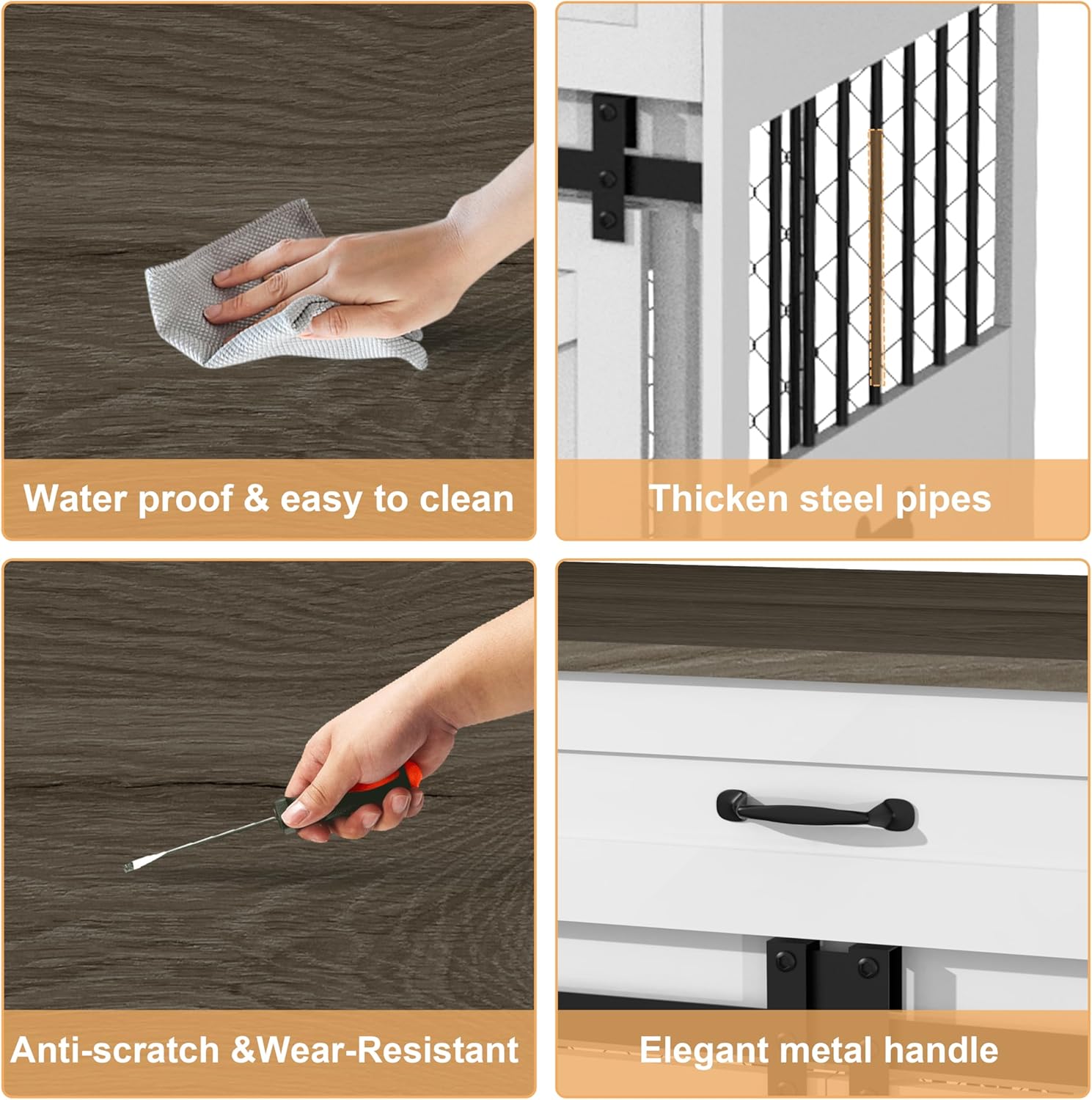 - Easy Assembly and Ample Storage: With three spacious drawers, this dog crate furniture keeps all your pet essentials organized and within reach. Each crate comes with clear instructions for effortless assembly, so you’ll have your stylish new dog cage set up in no time!