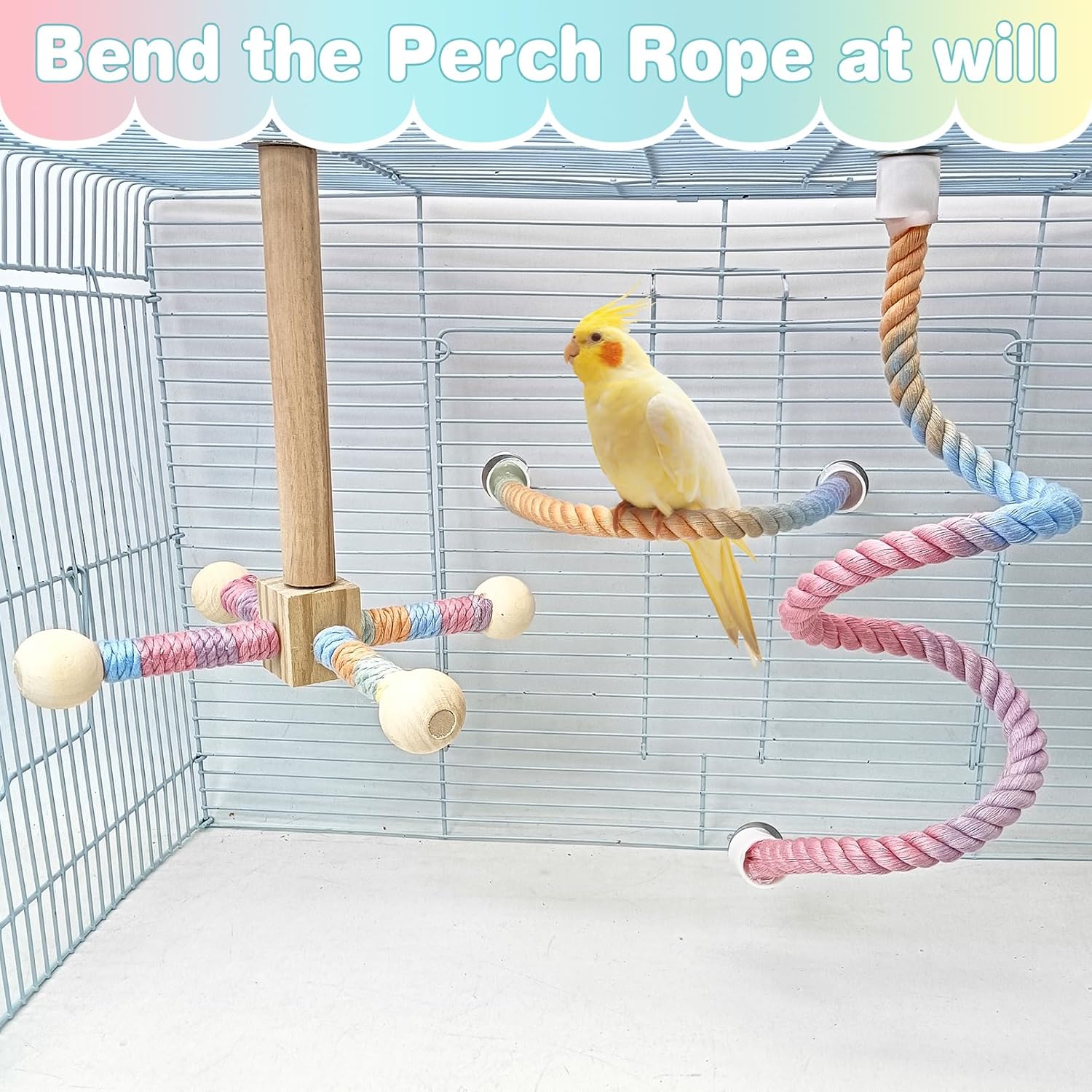 - Sturdy Material: Rope perches for bird cages is made of cotton ropes and natural wood, with metal supports inside. Bird rope toys is not only strong and durable but also can be bent into various shapes, enriching the living space for birds