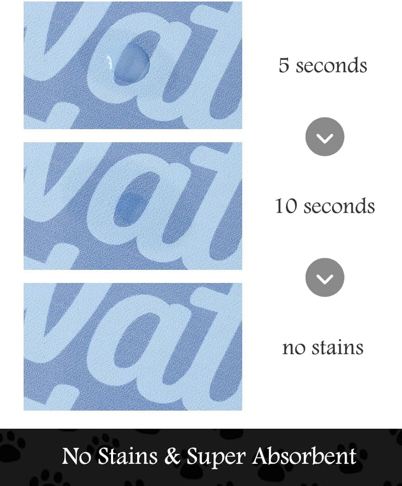 - Super Absorbent & Durable: Perfect pet supplies.This pet food mat can prevent liquid from overflowing. Super absorbent and quick-drying ability to avoid wetting pet paws even for messy drinkers. Sturdy dog & cat food bowl mat cannot be torn easily and avoid eating by mistake. Keep the pet's eating environment tidy and clean.