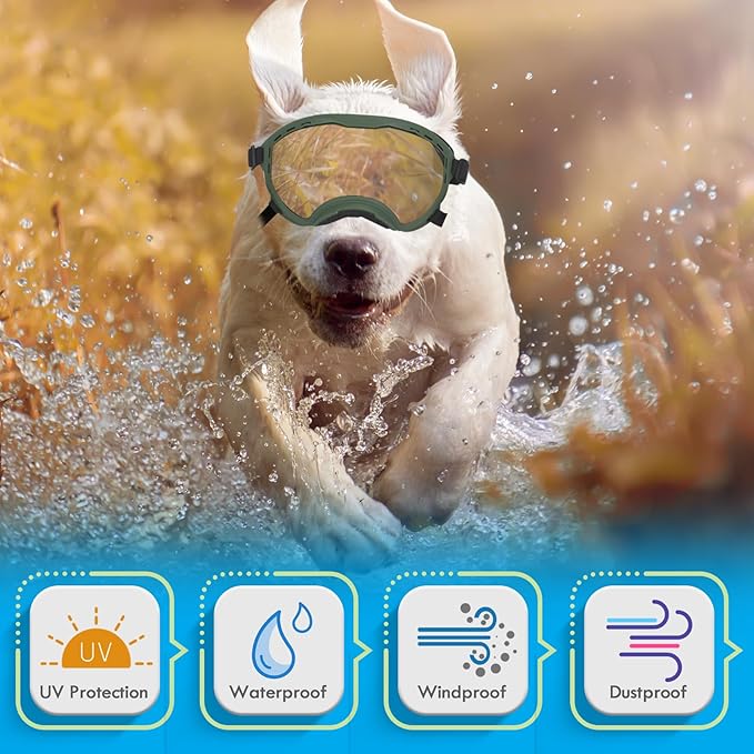 - Cool Dog Goggles: From daily walks to beach fetch games and ski trips, these goggles shield eyes from sun and wind, while making your pup the trendiest explorer. The breathable design keeps them comfy for photo shoots or car rides!