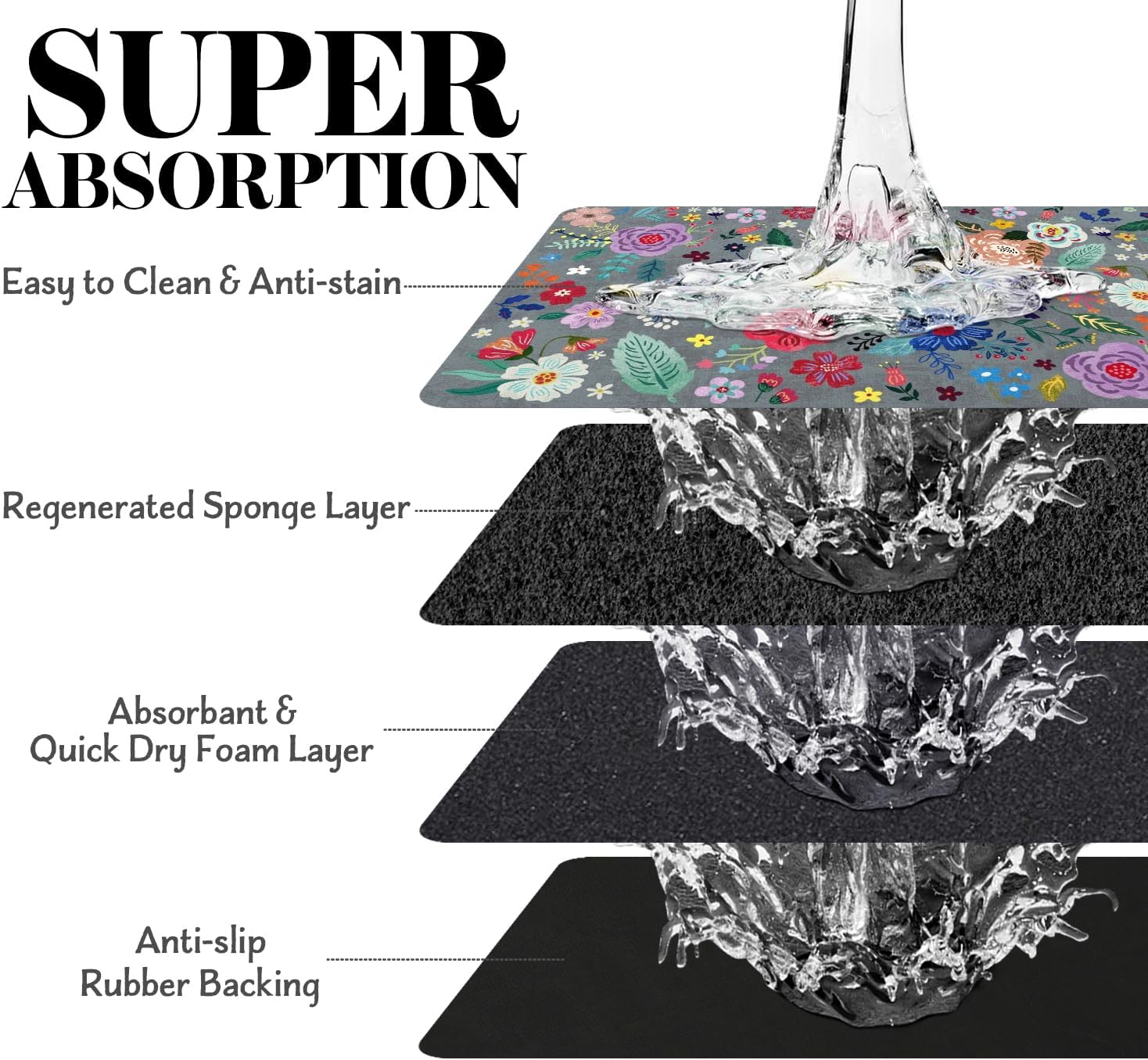 • Super Absorption: The dog mat for water bowl can absorb spilled water without leaving traces and dry quick, avoid wetting pet paws even for messy drinkers. And it does not attract pet hair like traditional silicone dog bowl mat.