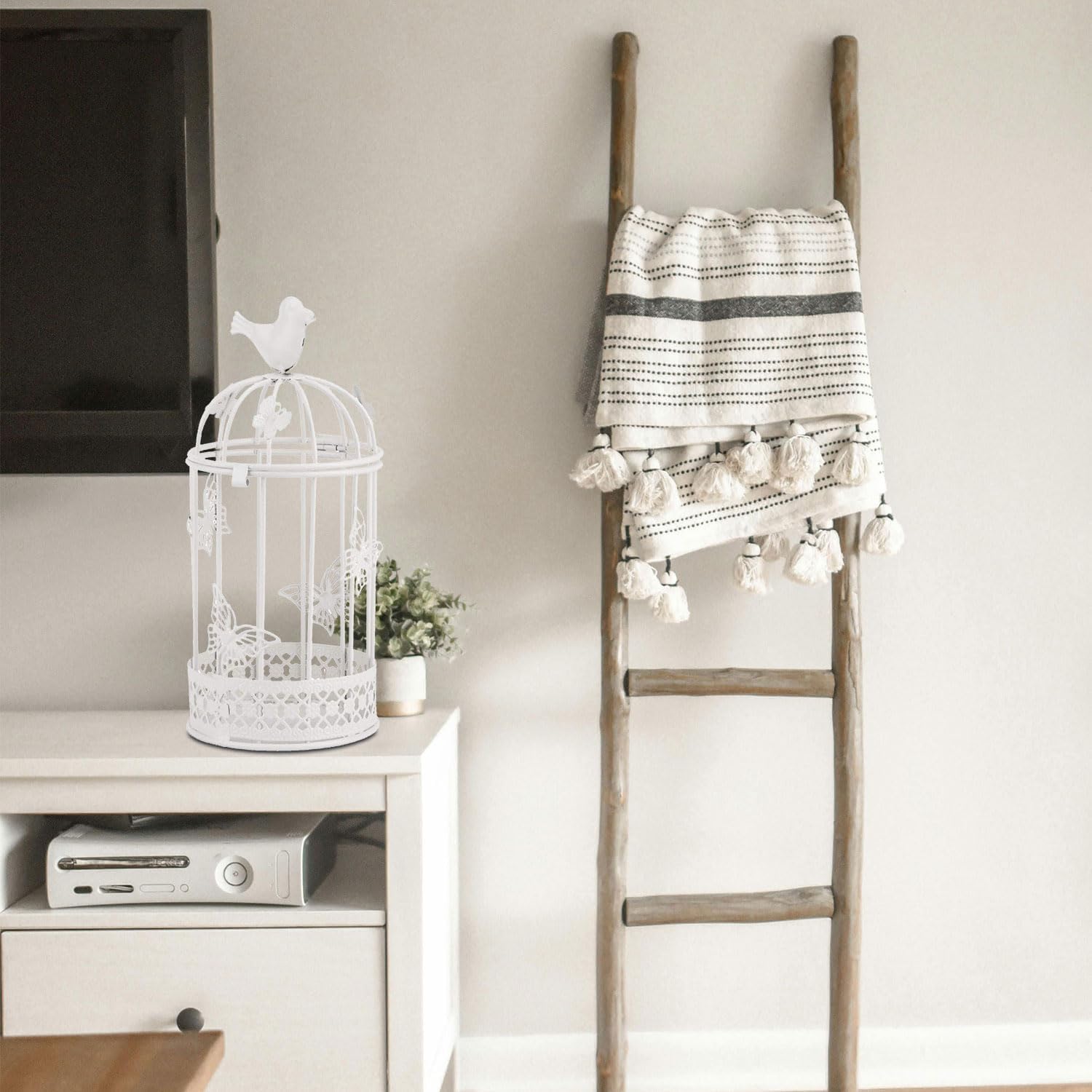 - Whimsical Birdcage Design: This off-white birdcage decor features a bird-shaped handle at the top, while the cage body is adorned with intricate butterfly cutouts. Skillfully blending vintage charm with exquisite craftsmanship, it stands as a delicate decorative piece that embodies both retro allure and artisanal ingenuity.