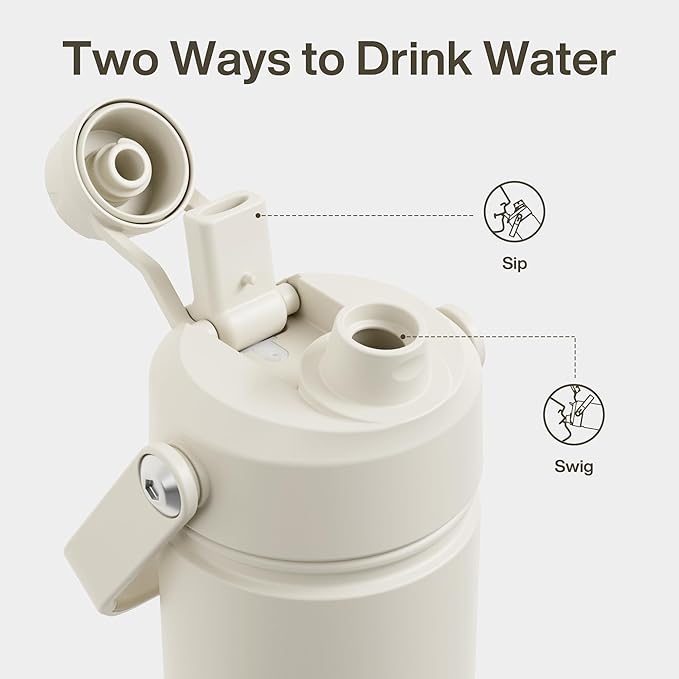 Kids Insualated Water Bottle with Straw - 12oz Stainless Steel Water Bottle with Dual Spouts, Leak-Proof, BPA-Free, Double Wall Vacuum Keeps Cold for 24 Hours for Sports, Travel, School (Cream Moon)
