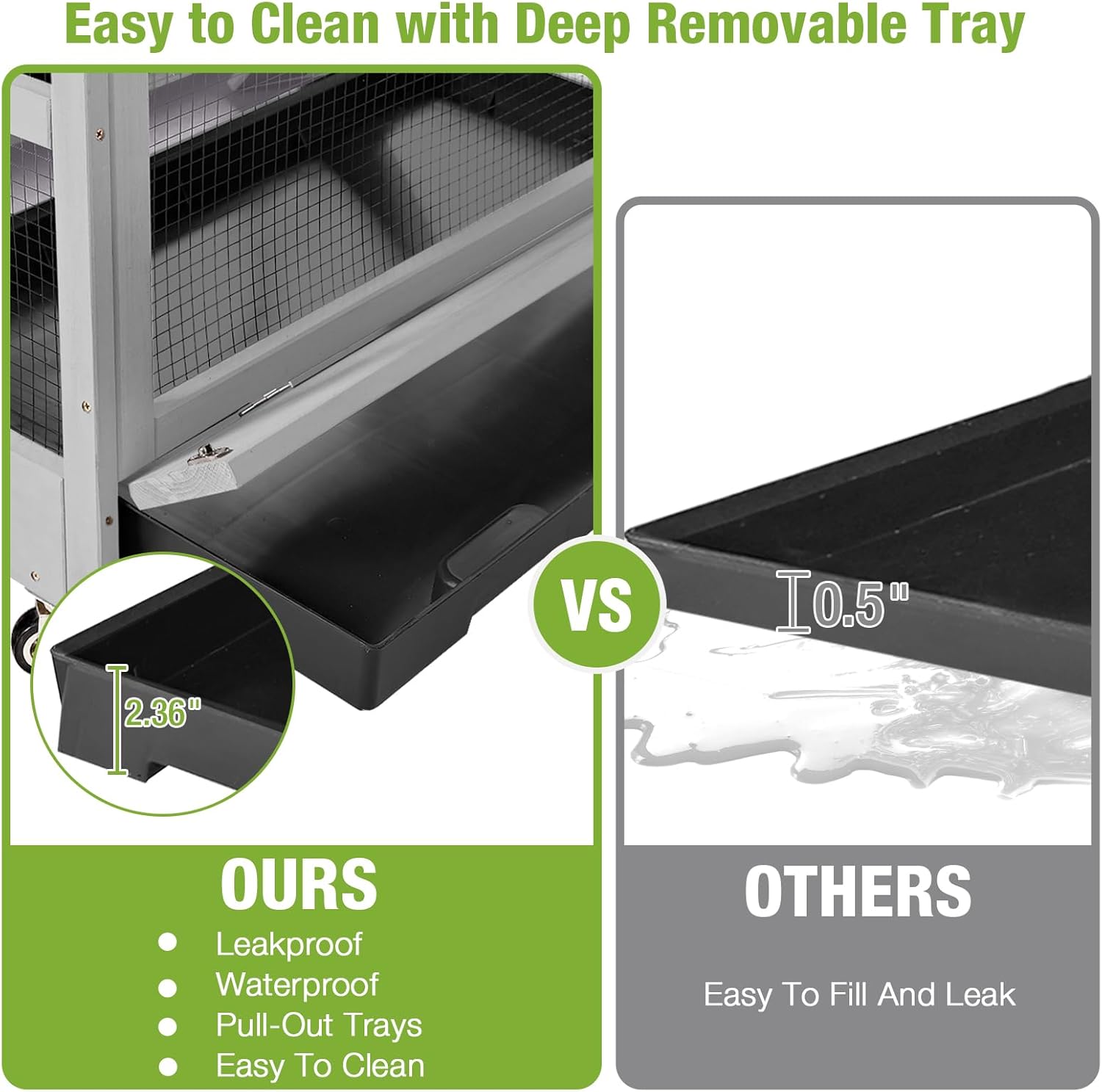 - ππππ πππππππππ ππππ π ππ πππ ππππ β 2.36" deeper, leakproof & waterproof. Pull - out design simplifies cleaning, containing bedding & waste, keeping habitat fresh