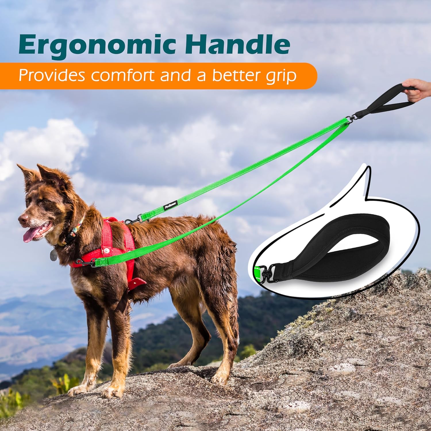 PetBonus Two Point Control Dog Leash, Works with No Pull Harnesses, No Tangle Training Leashes, Soft Padded and Reflective Walking Lead, Converts to Single Lead for Medium Large Dogs (Grass Green)