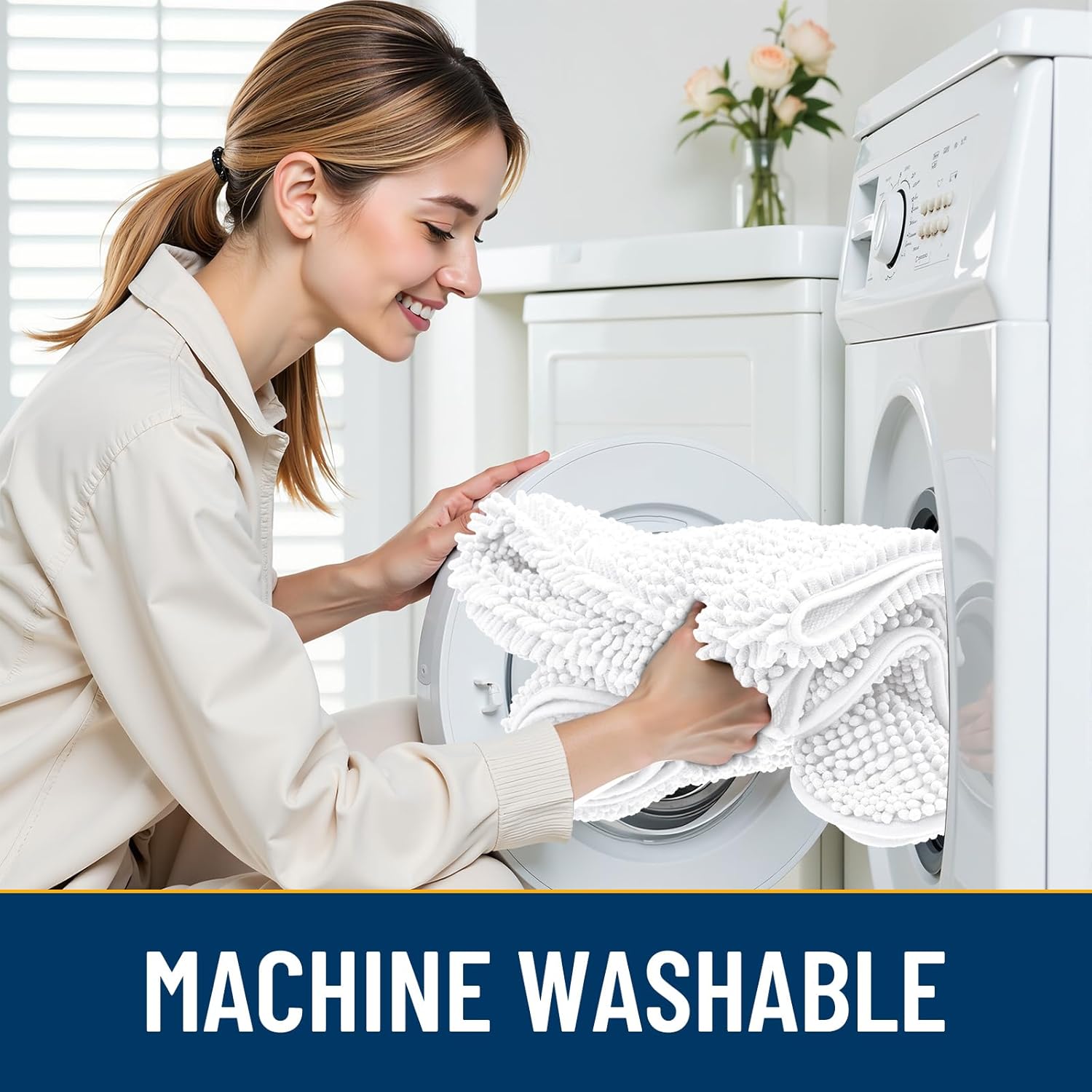 - [Easy Clean and Care] Our indoor door mat for muddy paws is also easy to clean and maintain. Simply shake off the dust or machine wash it for a deeper clean. It dries quickly, so you can be sure it's ready to use again in a short time. Please wash with cold water and dry naturally or at low temperature.