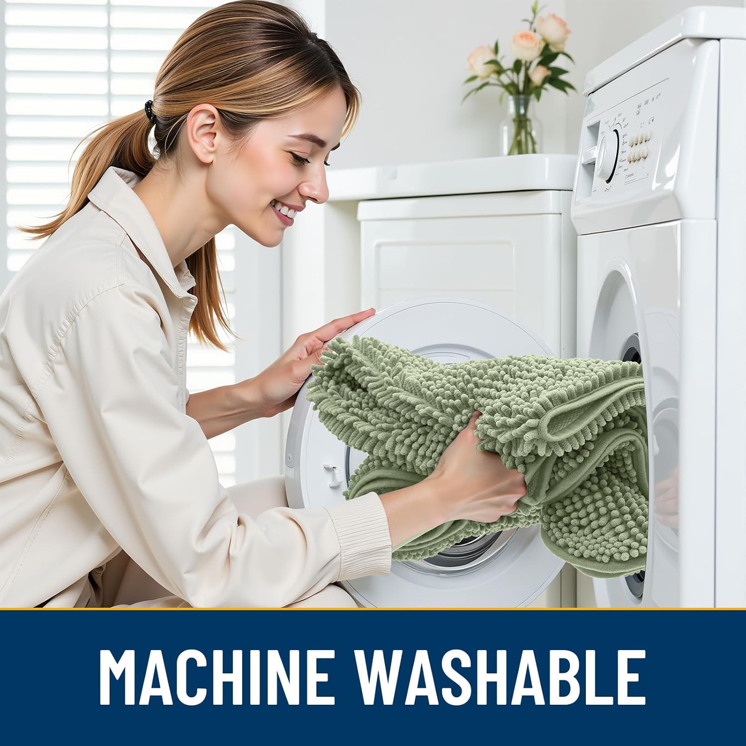 Smiry Dog Door Mat for Muddy Paws 36x24, Absorbs Moisture and Dirt Doormat, Non-Slip Washable Quick Dry Chenille Front Door Mat Indoor Entrance, Entryway Carpet for Inside Floor, Sage Green
