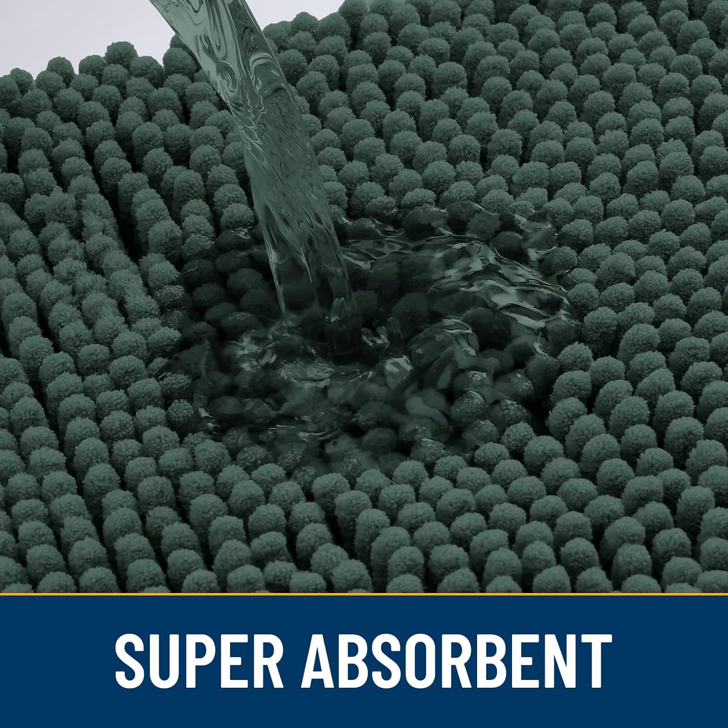 Smiry Dog Door Mat for Muddy Paws 47x32, Absorbs Moisture and Dirt Doormat, Non-Slip Washable Quick Dry Chenille Front Door Mat Indoor Entrance, Entryway Carpet for Inside Floor, Green