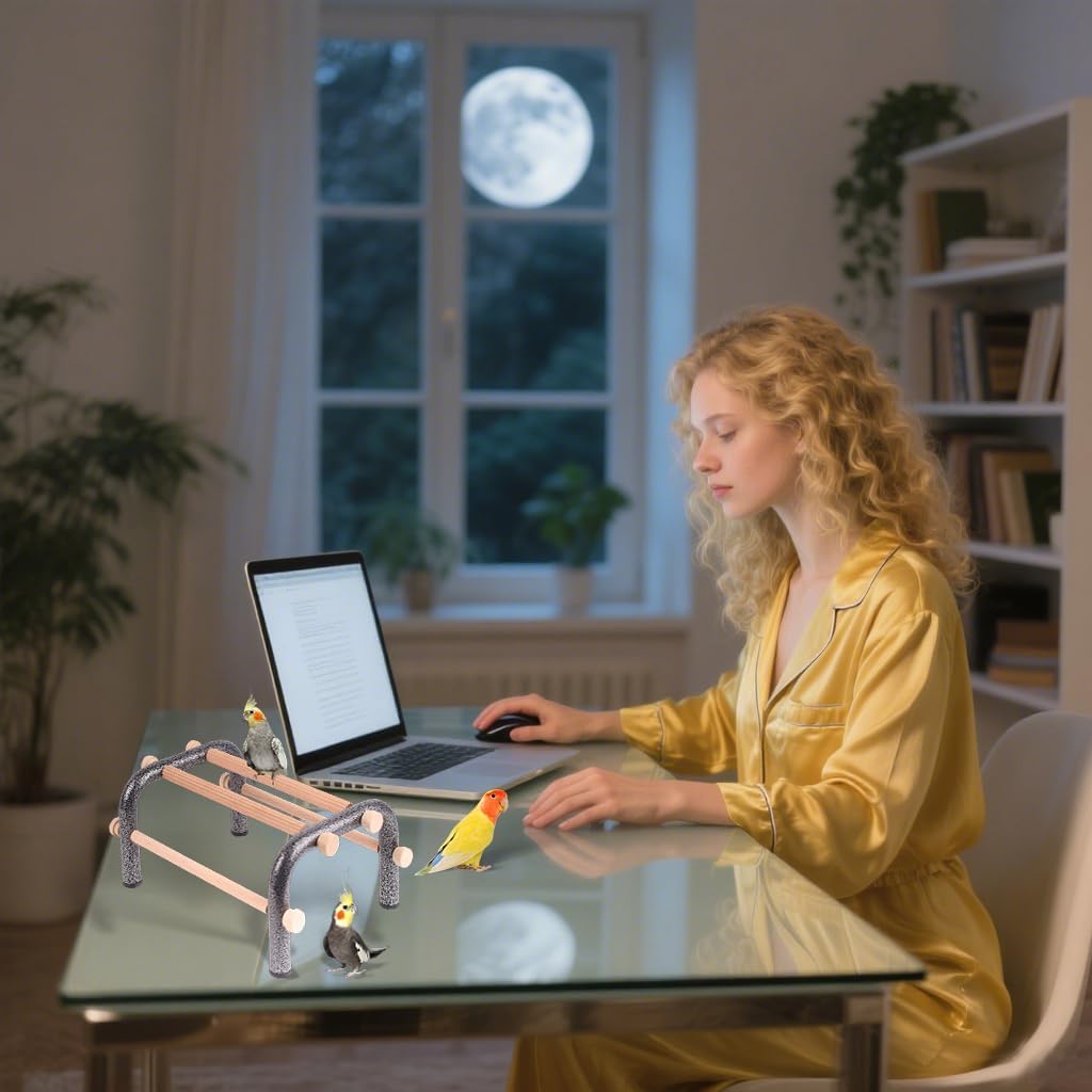 Small Bird Training Perch Table Stand for Parakeet Budgies Cockatiel Conure, Rustproof Durable Heavy Duty Metal Frame with 4 Wooden Bars for Bird to Play Climb and Exercise Toy