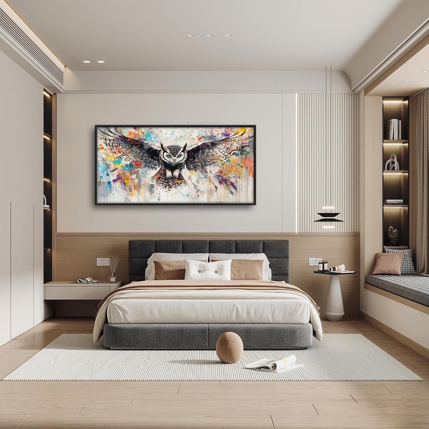 Large Owl Wall Art for Living Room, Framed Oversized Banksy Owl Wall Decor Colorful Wildlife Canvas Painting Animal Pictures Modern Artwork for Living Room Bathroom Bedroom Office Dining Room 60"x30"