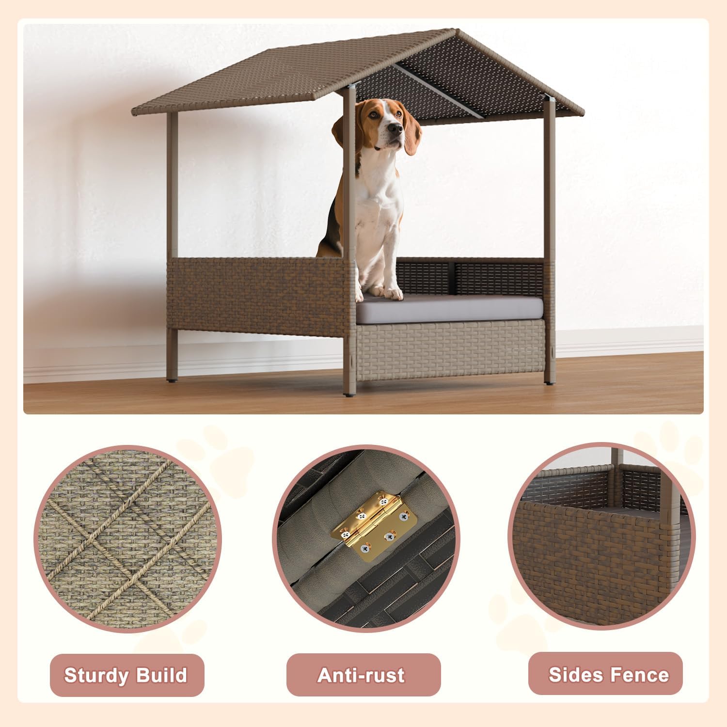 - Comfortable Cushion System: Premium high-density foam is attached to the rattan doghouse to create a comfortable bed with optimal support for your pet, and its breathable construction ensures air circulation while your pet rests. The removable cushion features a convenient zipper design for effortless cleaning (machine washable cushion cover recommended).