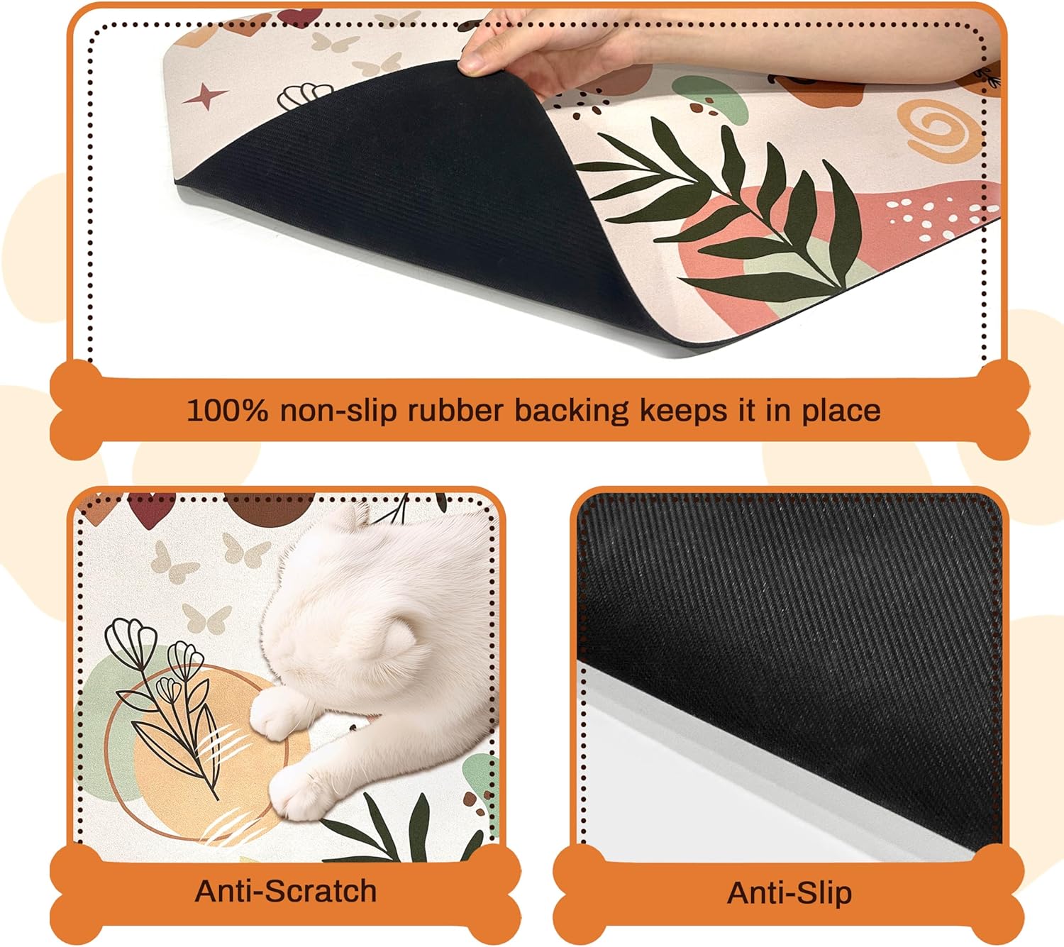 • Super Safe Non-Slip Rubber Mat for Dog Bowls - Our dog feeding mat features a special non-slip rubber backing that keeps the dog bowl mat firmly in place, even with energetic pets! The pet food mat won't bunch or slide during use. Perfect as pet mats for food and water in kitchens or feeding areas.