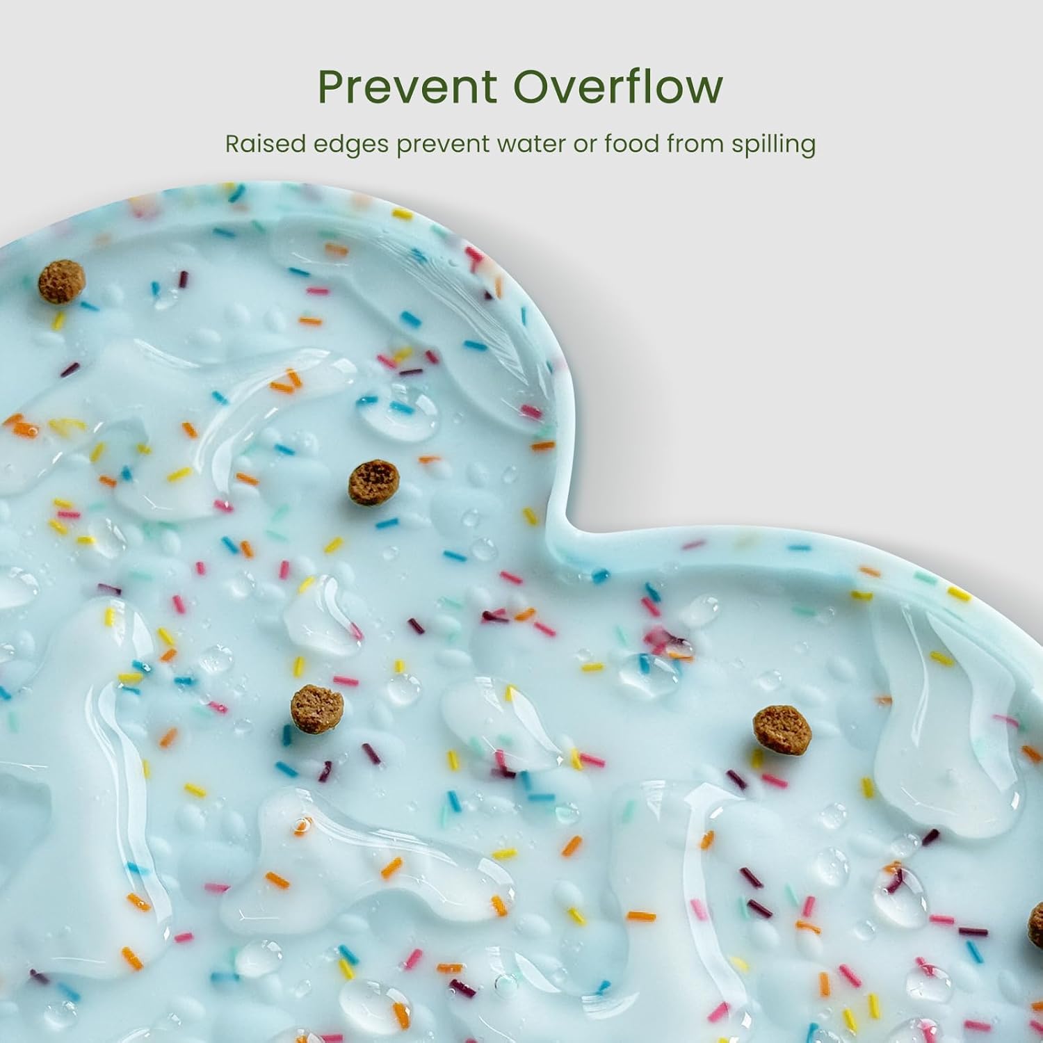 - Raised Edge - The high edge of this feeder mat keeps food and water within the tray and prevents spillage onto a clean floor. Keep your living space tidy and clean, say goodbye to messy floors, you just need to clean the dog bowl mat regularly.