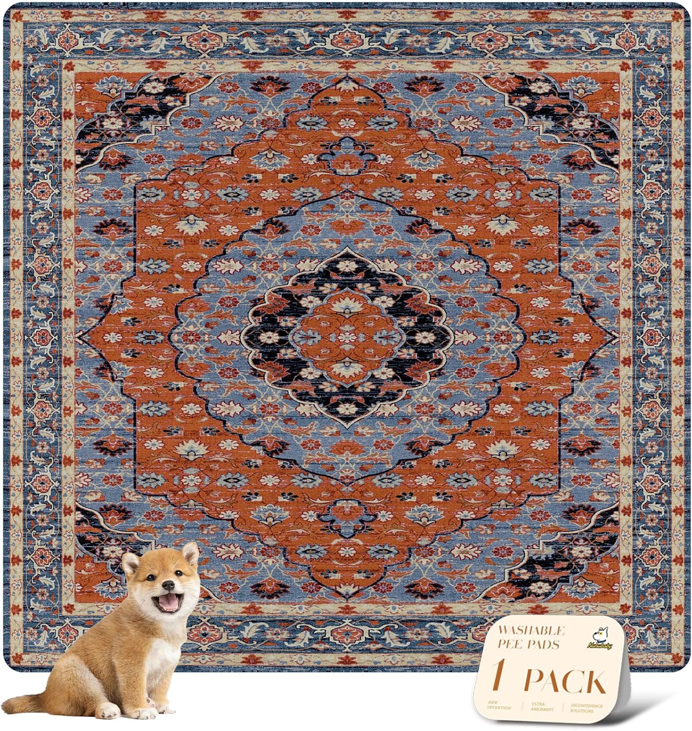 nunubaby Washable Pee Pads for Dogs, Stylish, Non-Slip and Leak-Proof Pee Pads. Reusable Potty Pads for Dogs for Crates and Floors.(Red/Multi, 72" x72")
