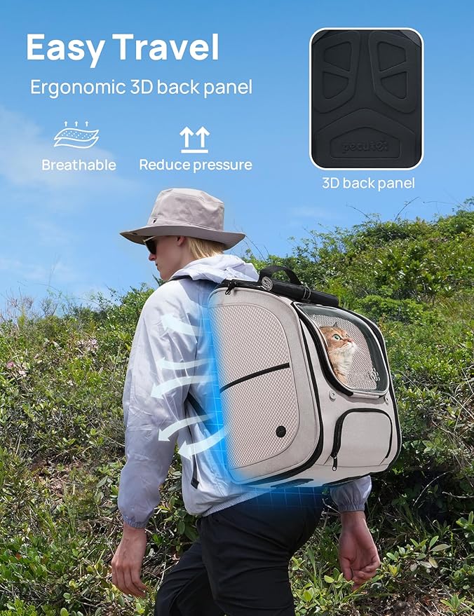 - Comfortable Carrying Experience: There is no pulling feeling when carrying the cat, and you don’t need to bend down when carrying it. The one-piece 3D printed back panel fits the back and improves the breathability of the back. A good cat backpack not only serves pets, but also serves pet owners.