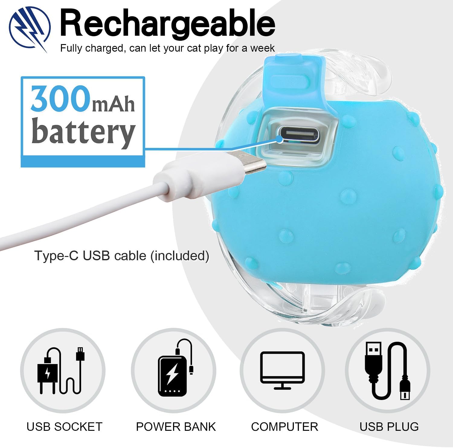 - Fast Charging & Eco-Friendly - USB Type-C rechargeable (cable included); 300mAh rechargeable battery and easily fully charged in 30 mins, no disposable batteries needed. Non-toxic silicone and ABS materials withstand scratches, convenient for cleaning.