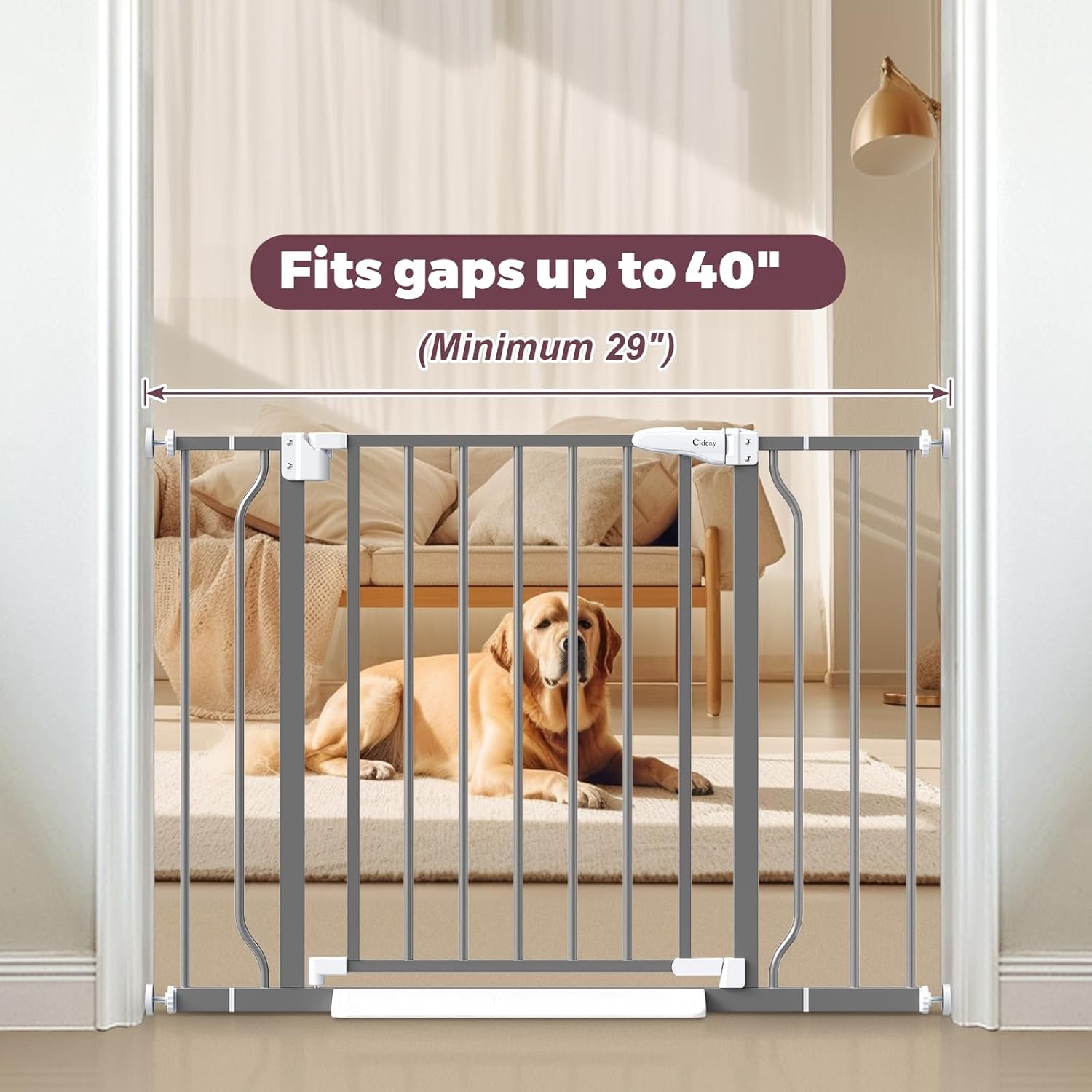 29"-40" Baby Gate for Stairs, Auto Close Stroller Friendly Dog Gate Indoor for Doorways, Pressure Mounted Baby Gate, Easy Walk Through Gate for Children & Pets, Grey