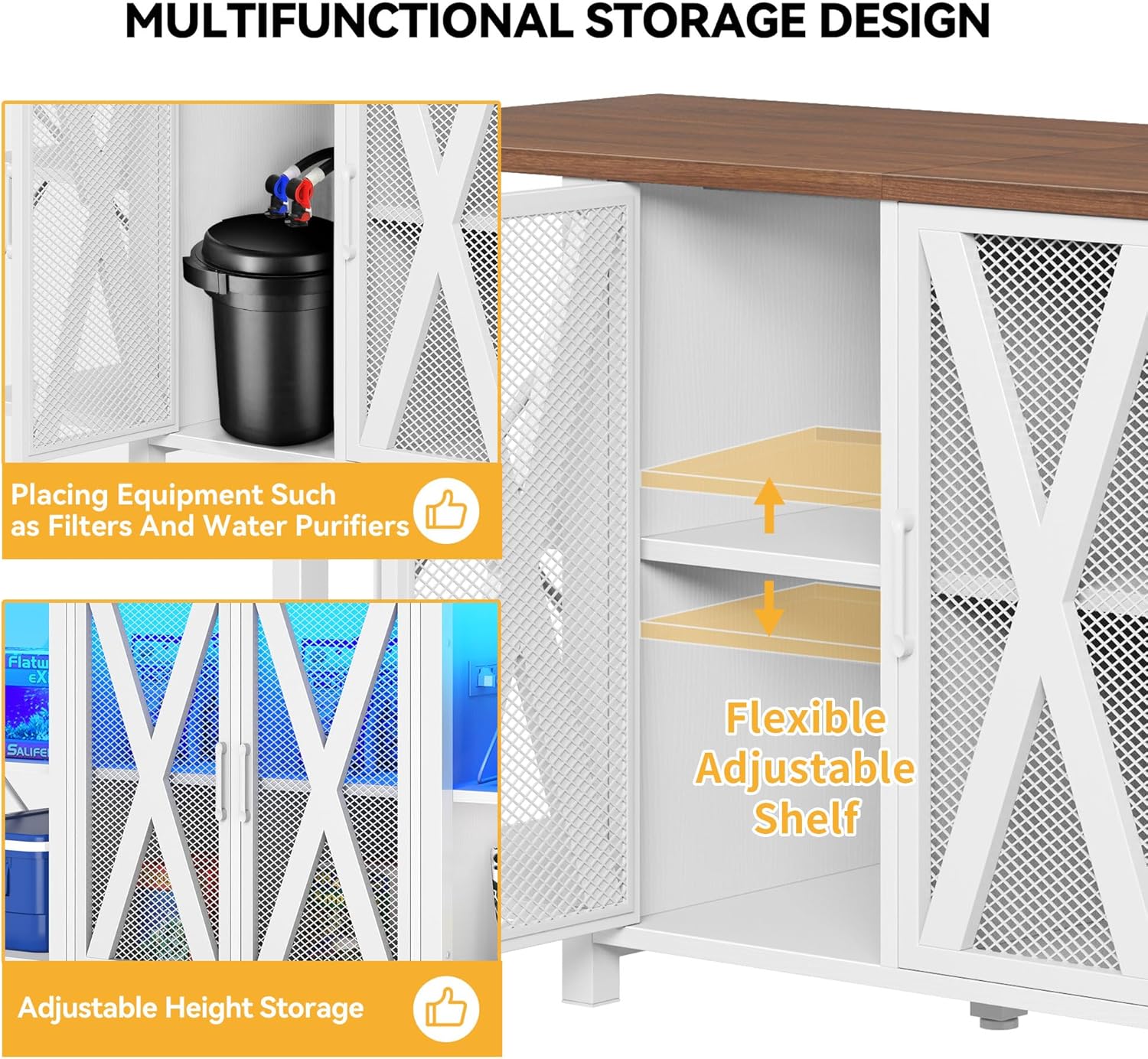 - Gorgeous LED Lights: Our aquarium stand is equipped with LED lights featuring RGB capabilities, both on the cabinet and above the smaller fish tank stand. This allows you to adjust the lighting of your aquarium according to your mood, creating any desired illumination