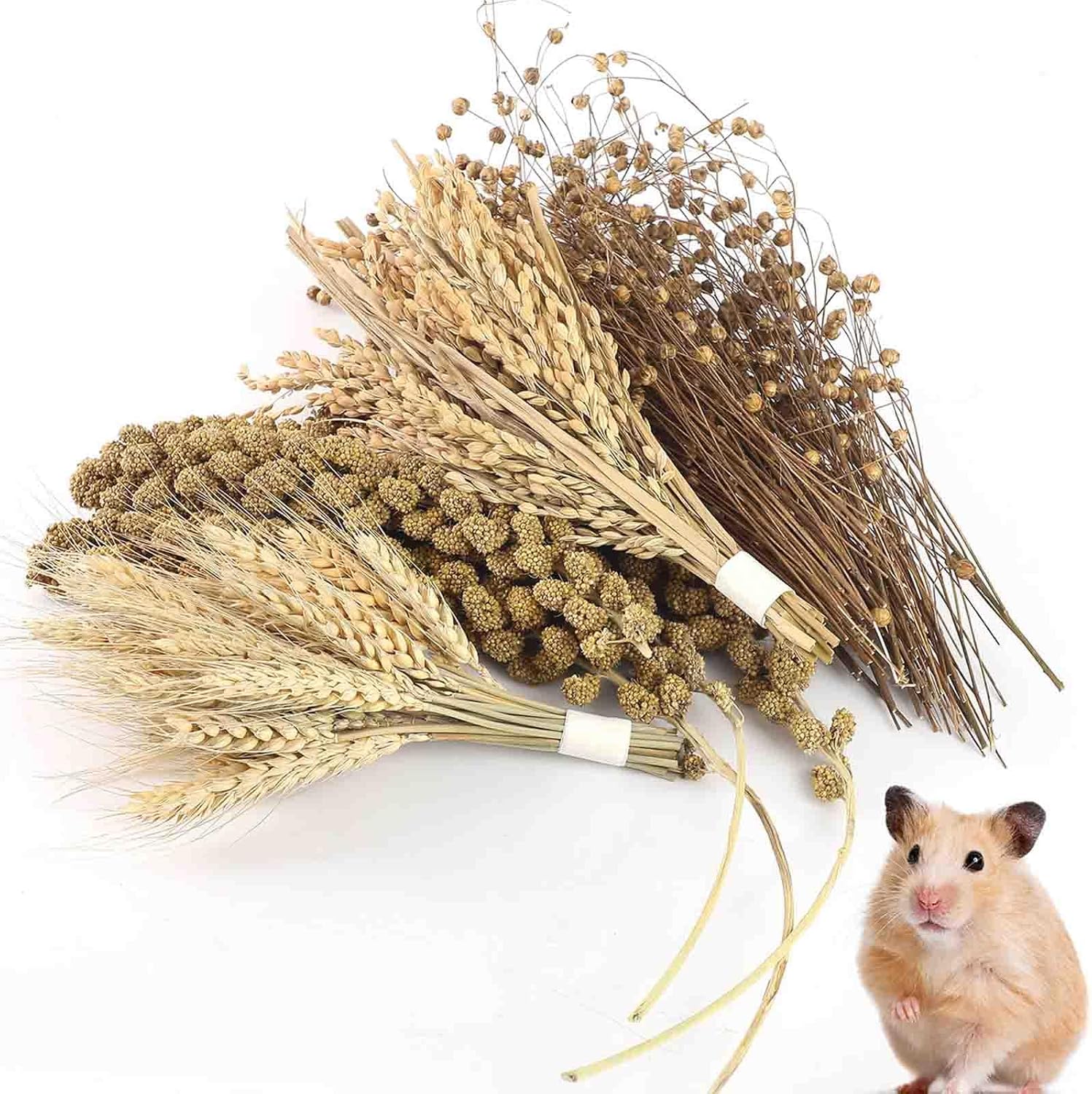 - TAOKEKE hamster spray set contains content: you will get wheat bouquet (35sticks), flax (50g), yellow millet (4sticks) and sorghum millet (25sticks), providing safe chewing toys and foraging rich toys for warehouses, sand, mice and other small pets